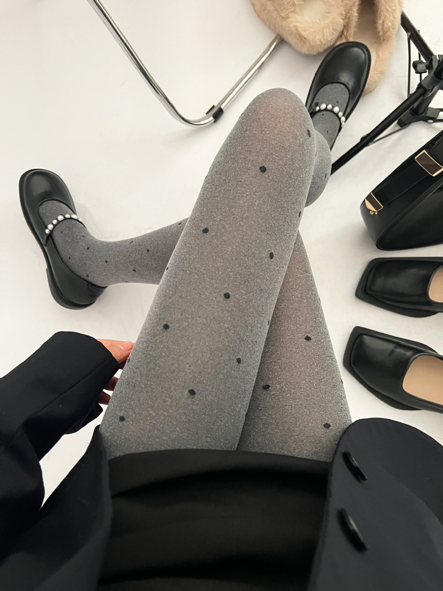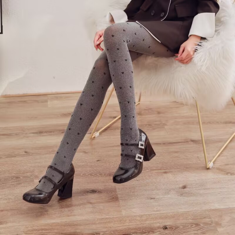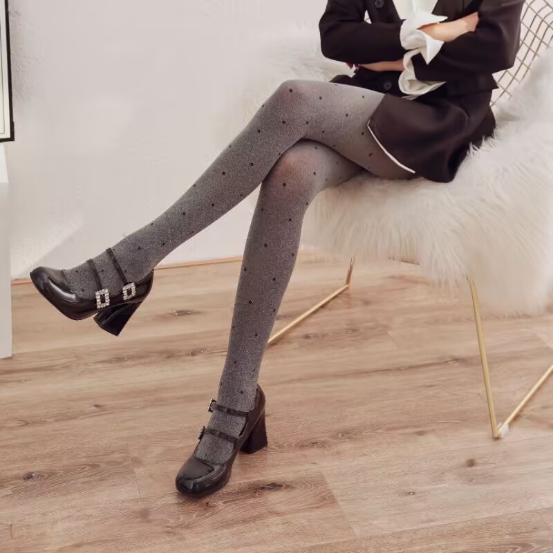 참깨 회색 팬티 스타킹 사랑 스타킹 여성 한국 봄과 가을 다리 자카드 폴카 도트 그레이 레깅스스토어 가기