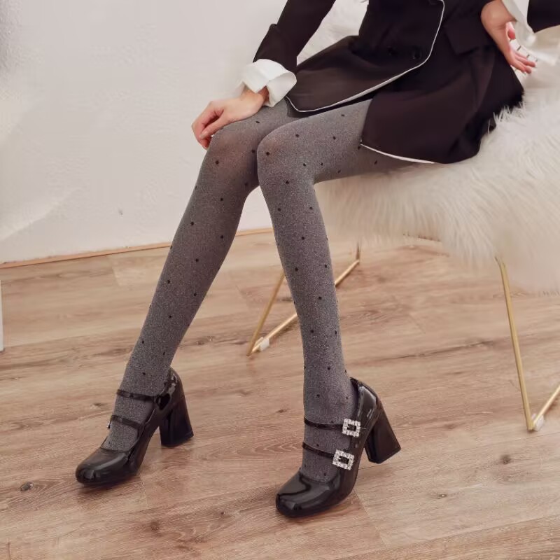 참깨 회색 팬티 스타킹 사랑 스타킹 여성 한국 봄과 가을 다리 자카드 폴카 도트 그레이 레깅스
