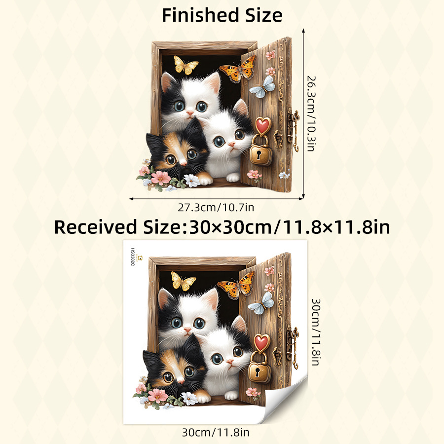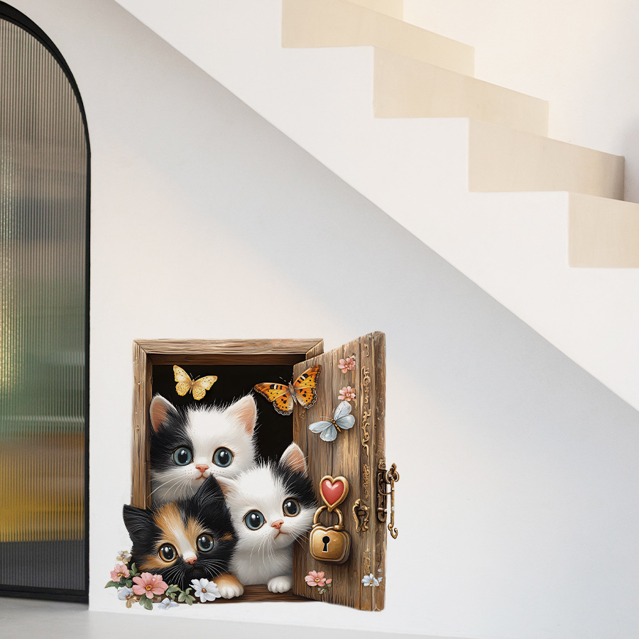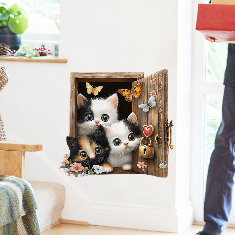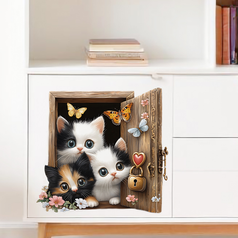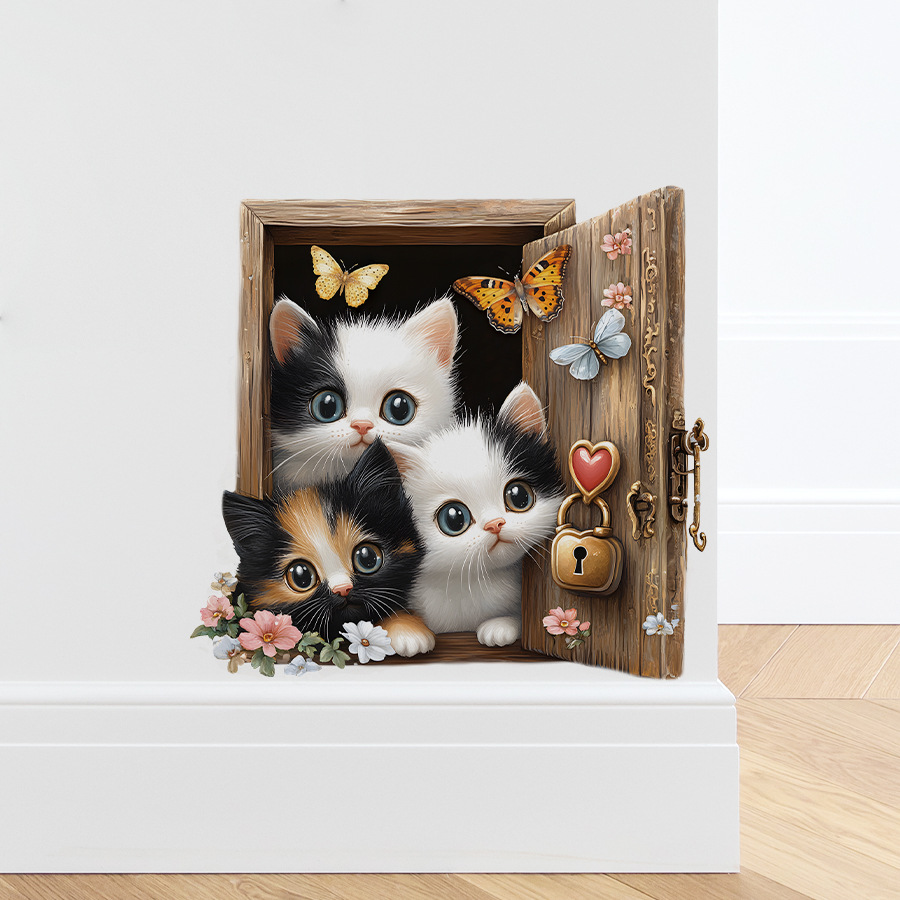 귀여운 만화 치료 세 새끼 고양이 자기 접착 벽 스티커 침실 거실 문 미화 장식 스티커 HS3382C스토어 가기