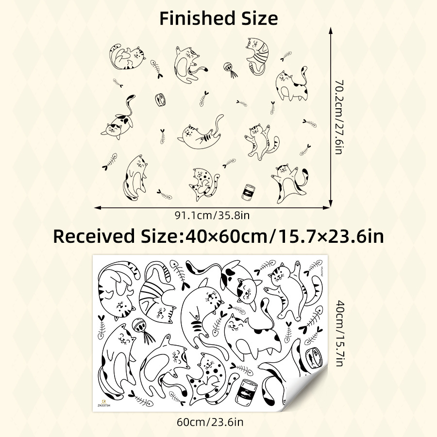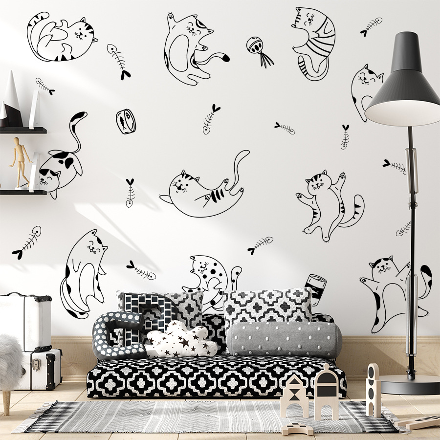 만화 일러스트 스타일 귀여운 고양이 Ins 자체 접착 벽 스티커 침실 기숙사 애완 동물 가게 장식 스티커 ZN3375H스토어 가기