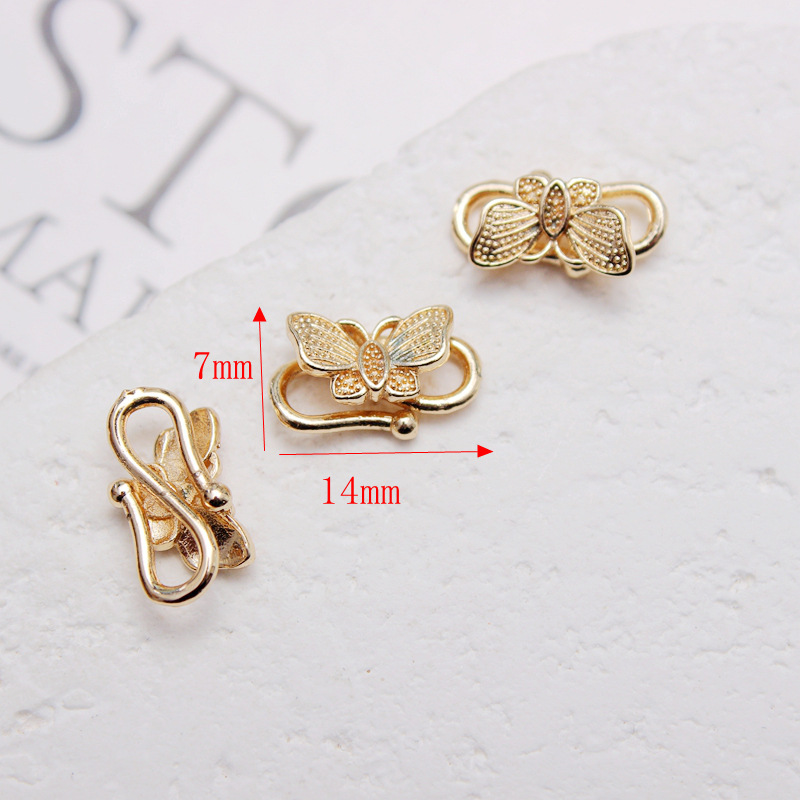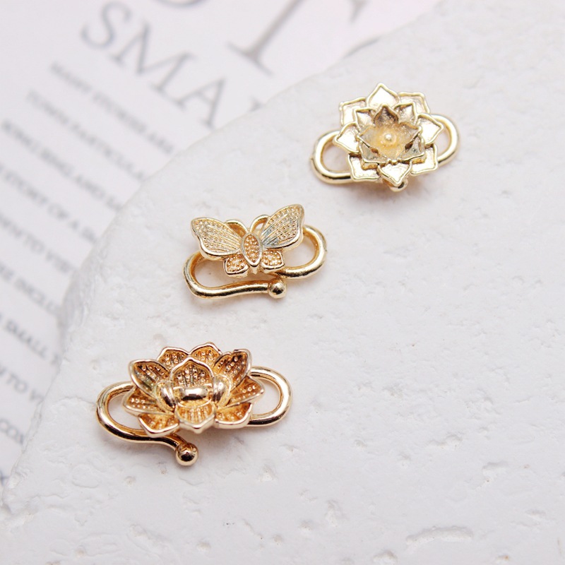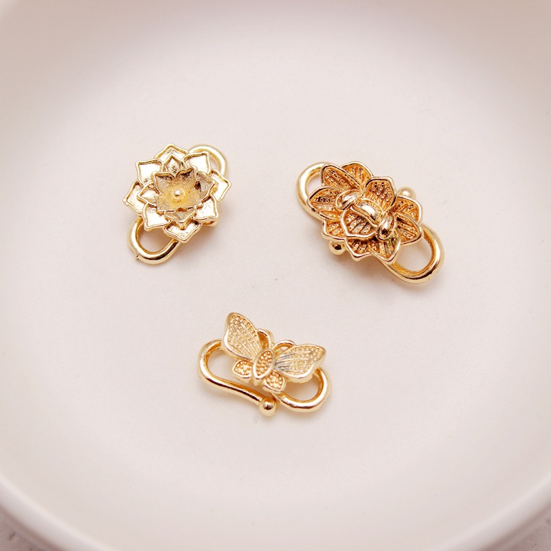 14K 골드 팩 컬러 보존 로터스 버터 플라이 로터스 S 버클 연결 버클 목걸이 팔찌 테일 버클 DIY 쥬얼리 액세서리 골드 도금