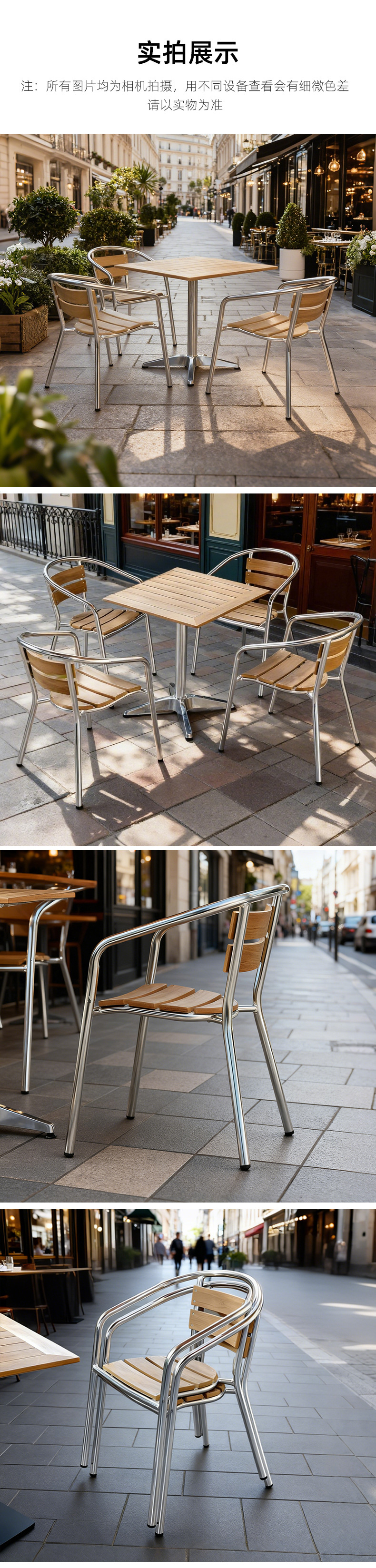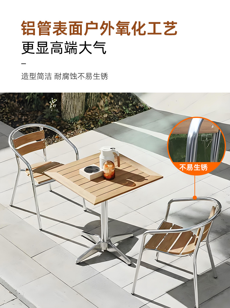 야외 플라스틱 목재 알루미늄 합금 테이블과 의자 조합 레저 의자 야외 안뜰 발코니 다이닝 테이블 온라인 유명 상점 매칭 테이블과 의자