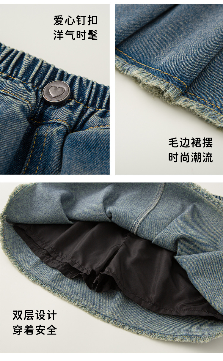 유바오 아동복 여아 데님 스커트 봄 새 도착 어린 소녀 스커트 올매치 A 라인 플리츠 스커트스토어 가기