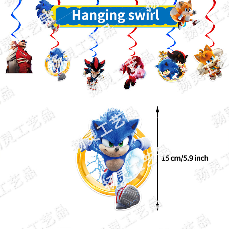 1 set Party Spirals Decor (6 Hanging Cards+6 Single Spirals: 3 Blue and 3 Red)