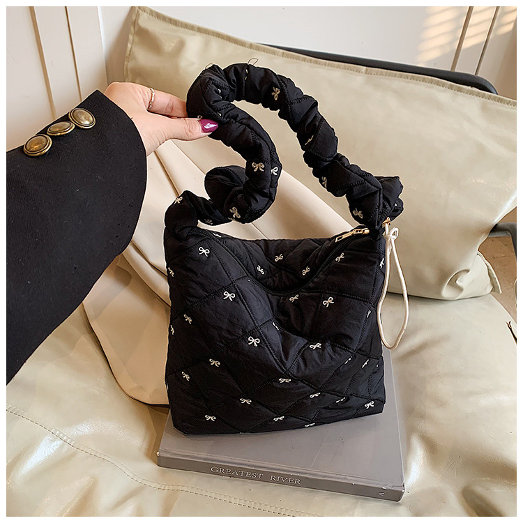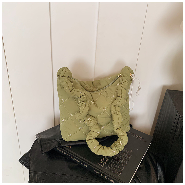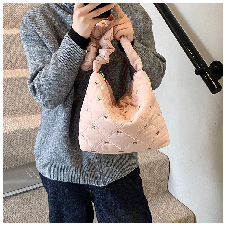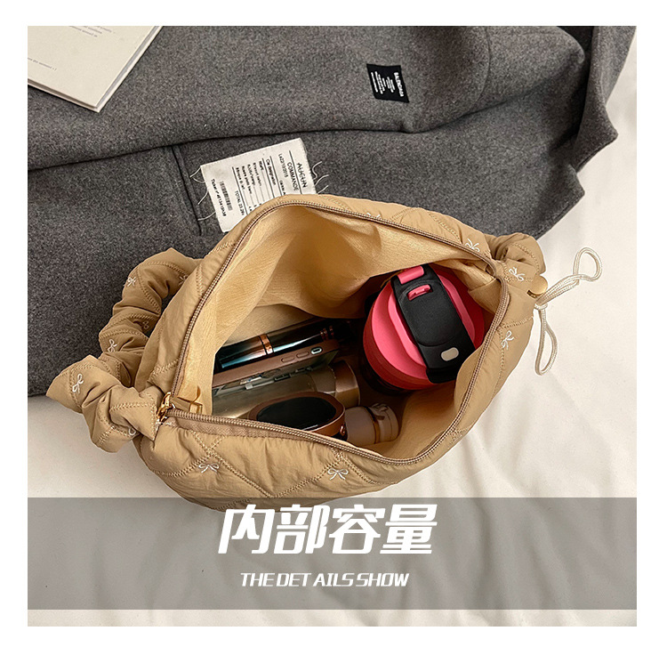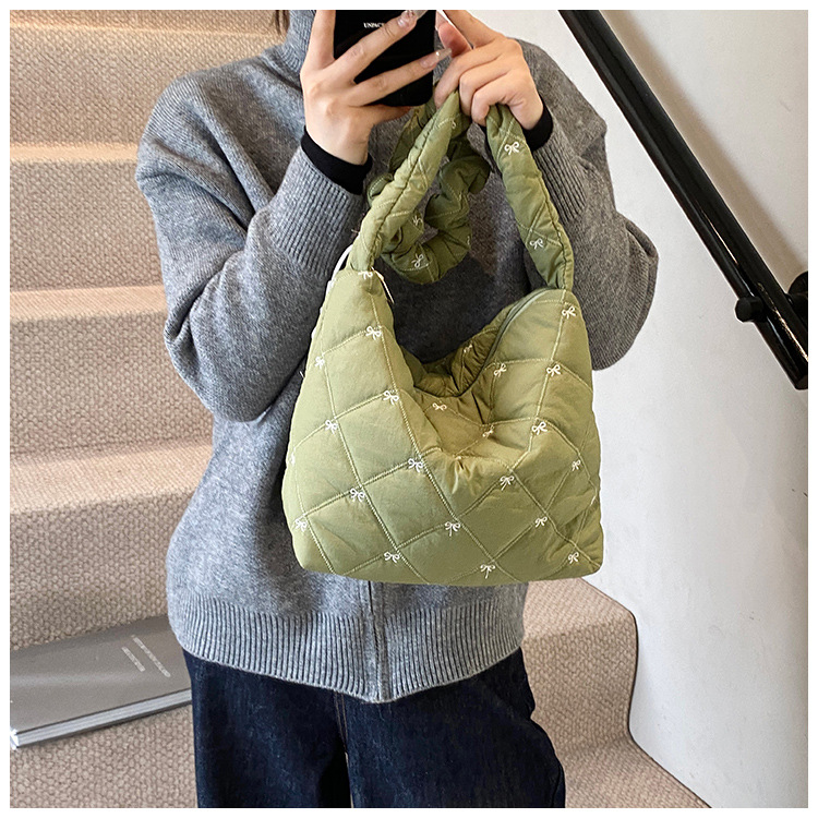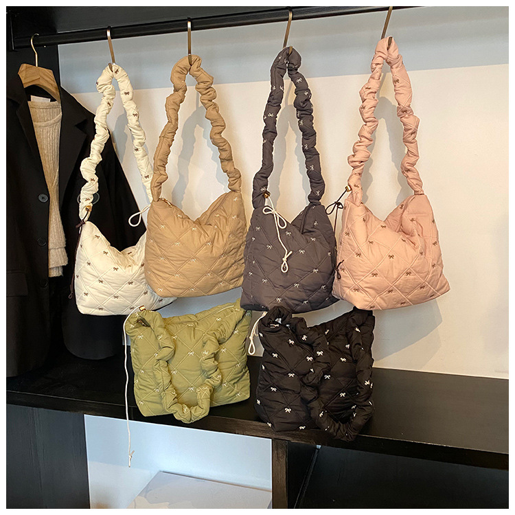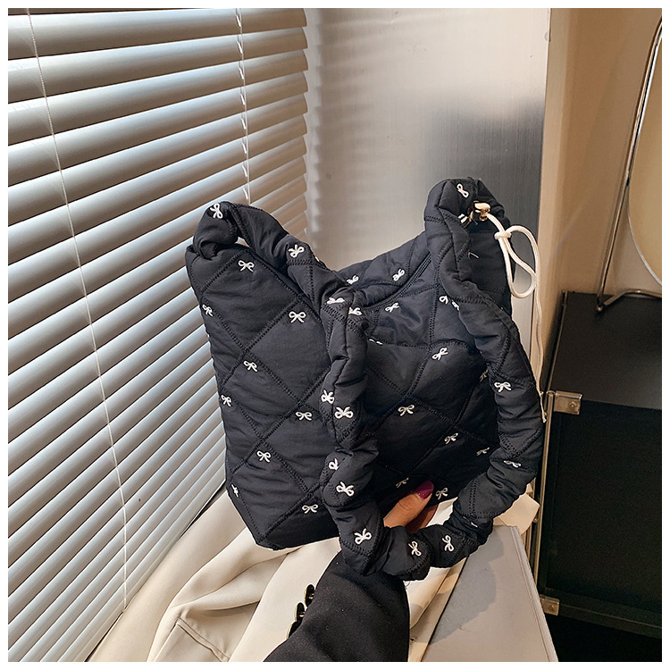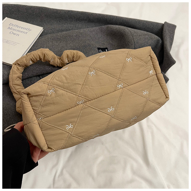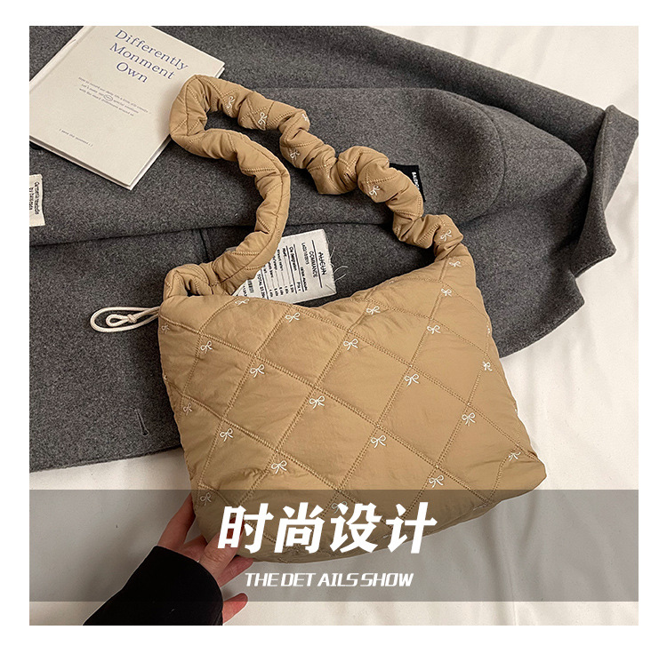 한국식 L 마름모꼴 자수 어깨 여성용 가방 2024 신간 면화 패딩 세트 크로스 바디 백 대용량 만두 백스토어 가기