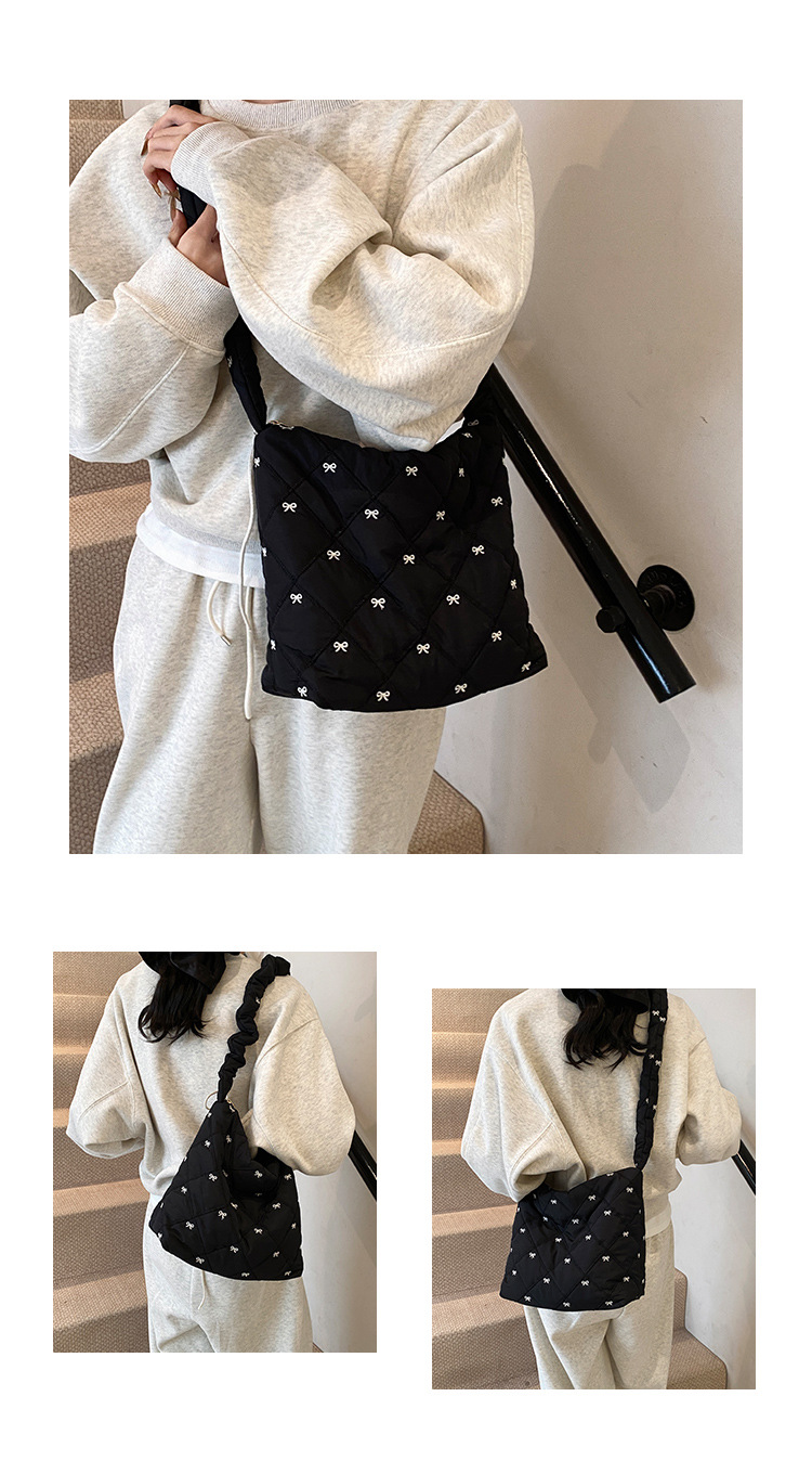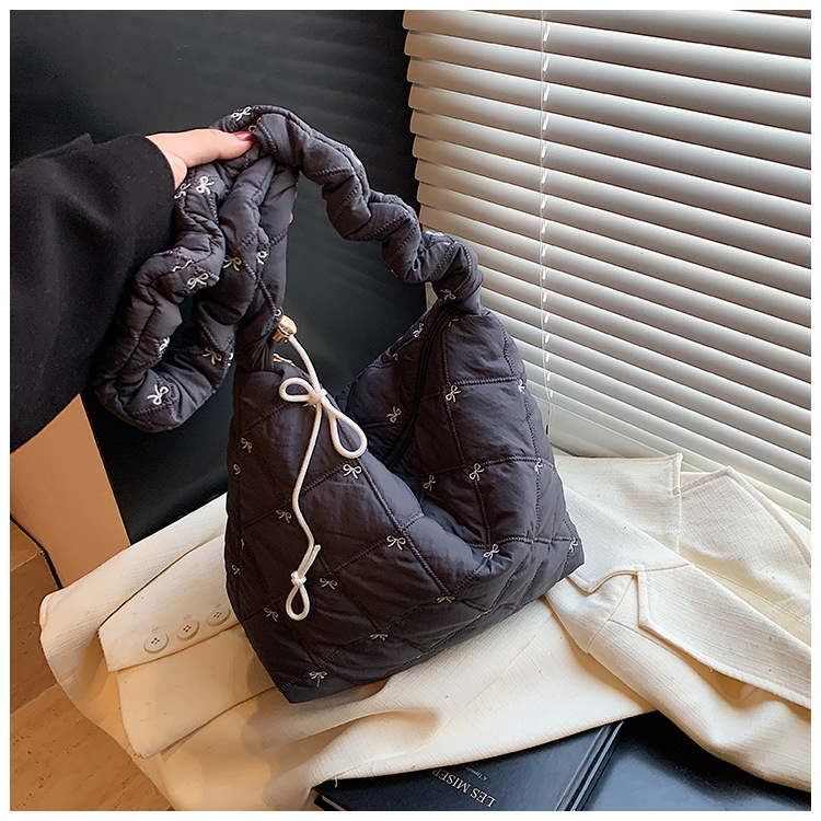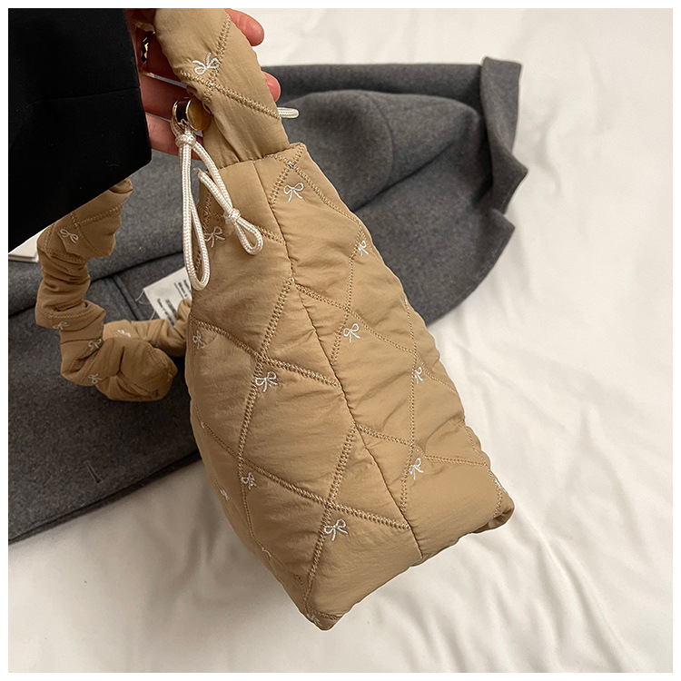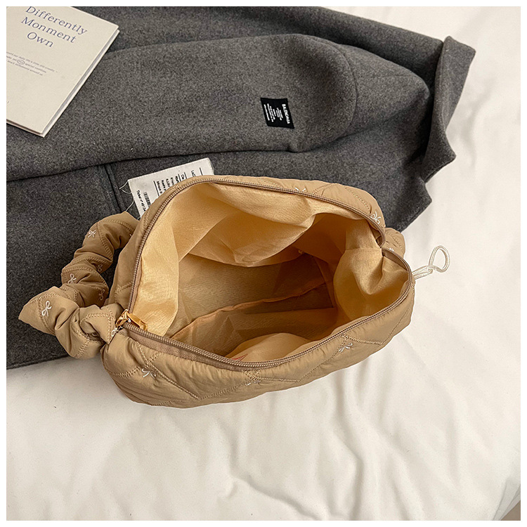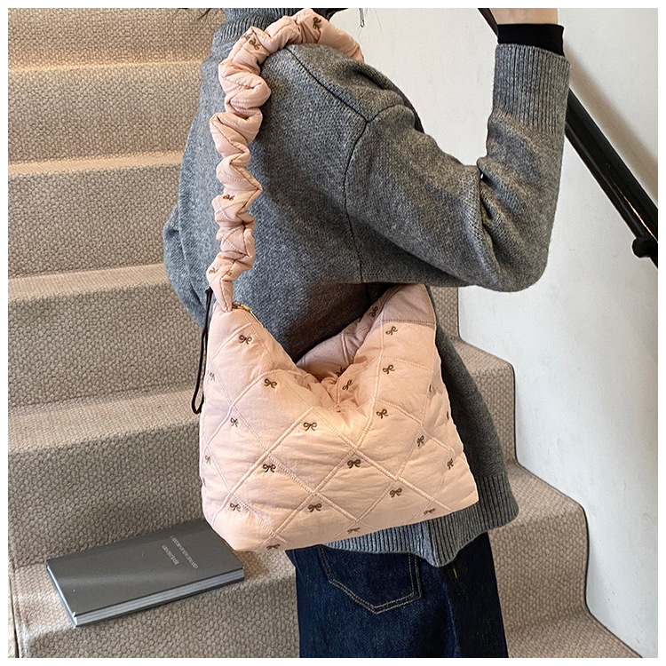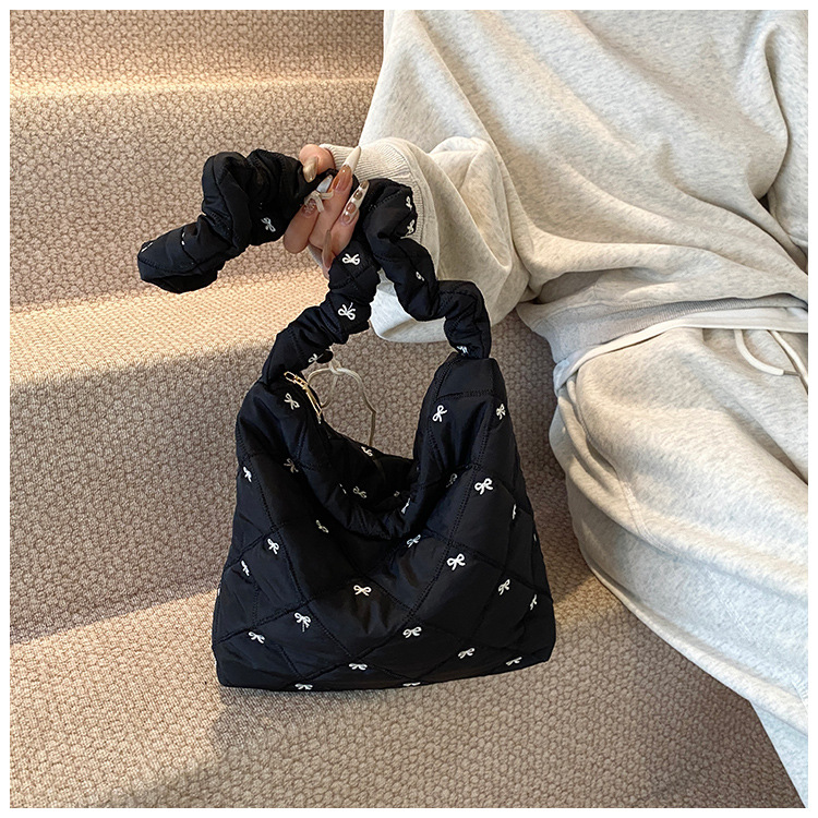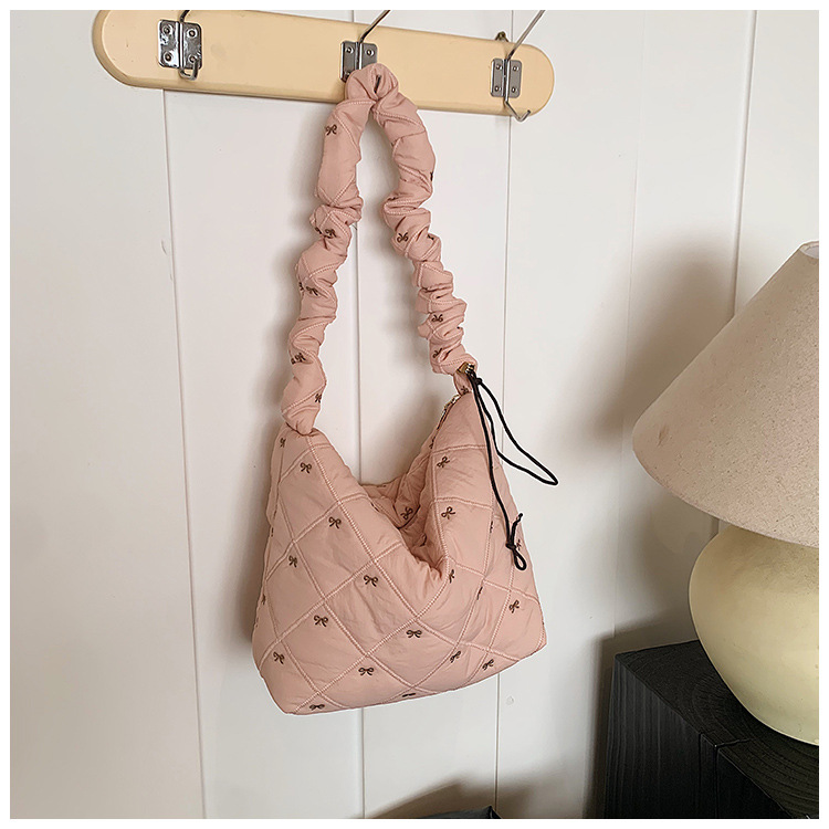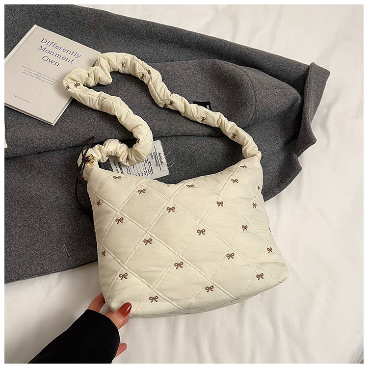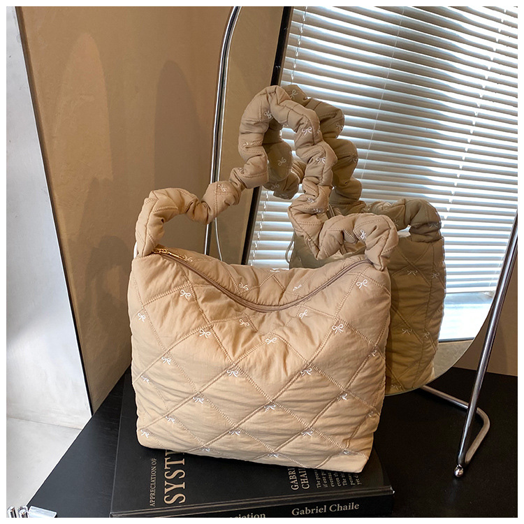 한국식 L 마름모꼴 자수 어깨 여성용 가방 2024 신간 면화 패딩 세트 크로스 바디 백 대용량 만두 백스토어 가기