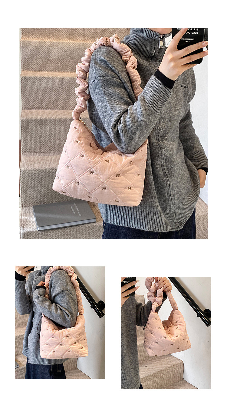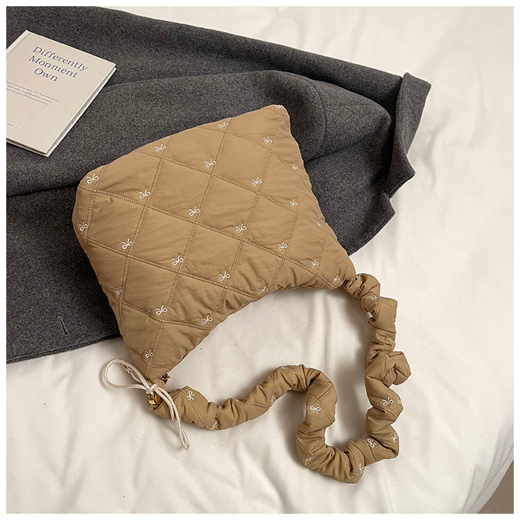 한국식 L 마름모꼴 자수 어깨 여성용 가방 2024 신간 면화 패딩 세트 크로스 바디 백 대용량 만두 백