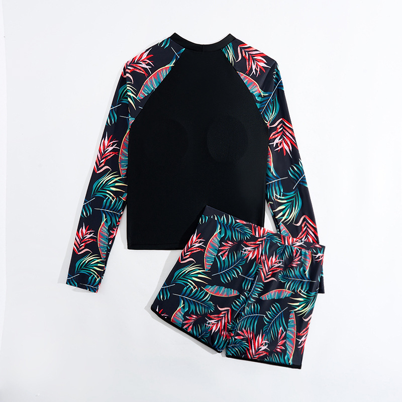 2025 국경 간 새로운 수영복 대외 무역 아마존 유럽과 미국 섹시한 인쇄 긴 소매 스플릿 서핑 수트 수영복 세트