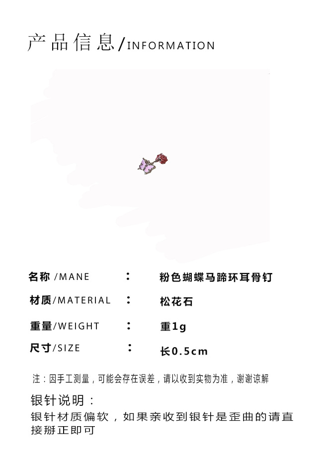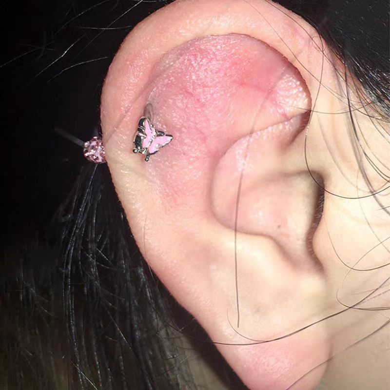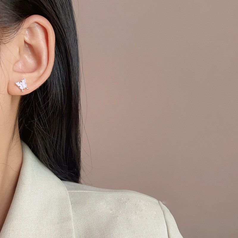 • 핑크 나비 말굽 반지 귀뼈 손톱