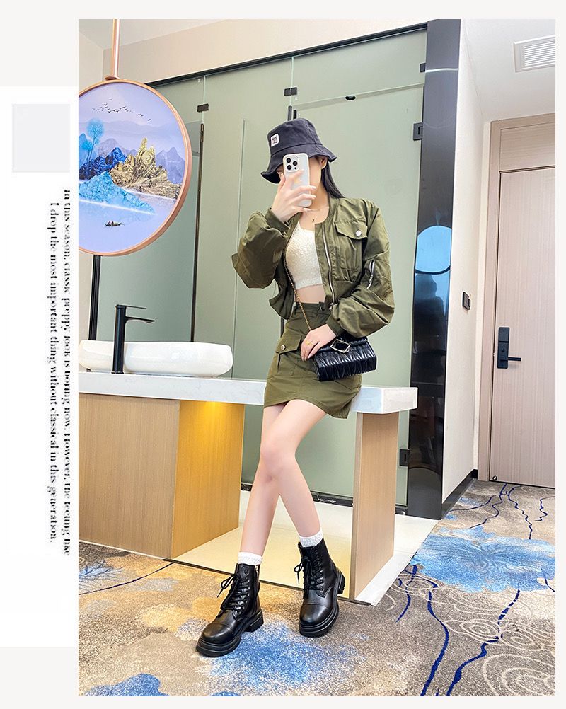 영국 스타일 두꺼운 힐 마틴 부츠 편안한 올 매치 기모 짧은 부츠 여성 신발 2024 가을 및 겨울 새로운 패션 거리 사진 촬영 가죽 부츠스토어 가기