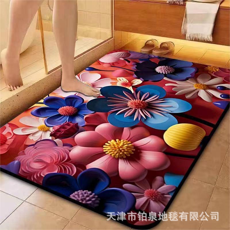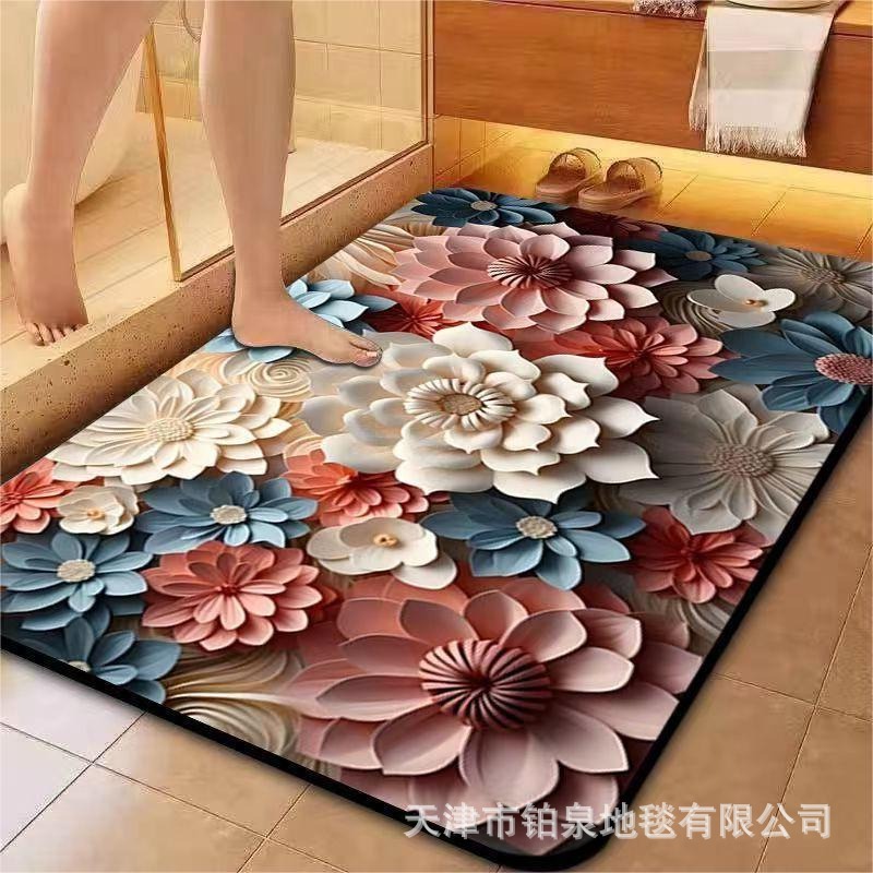 꽃 Ins 스타일 욕실 꽃 바닥 매트 Diatom 진흙 입구 문 목회 꽃 문 매트 홈 주방 바닥 매트
