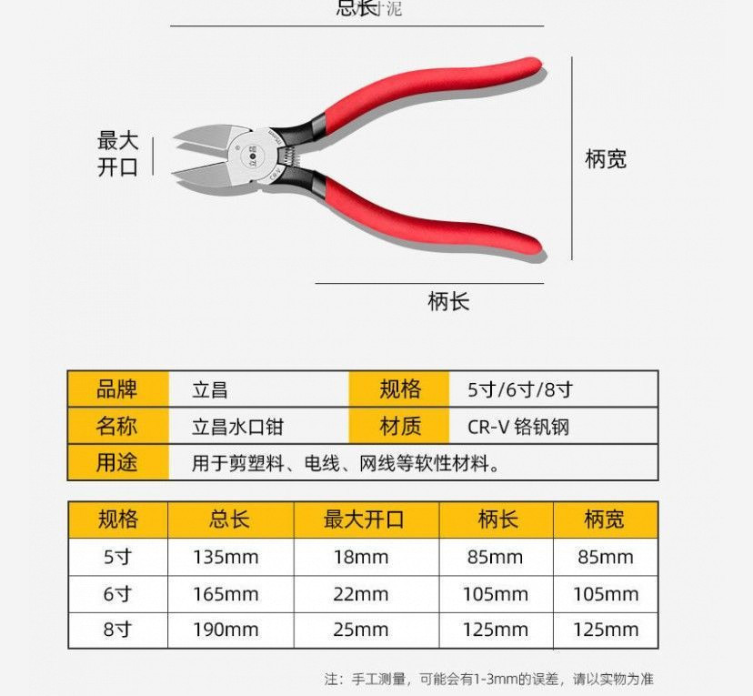 공예 물 입 펜치 대각선 플라이어 전기 6 인치 8 인치 산업 등급 건담 모델 컷 작은 부분 입 절단 펜치 대외 무역스토어 가기
