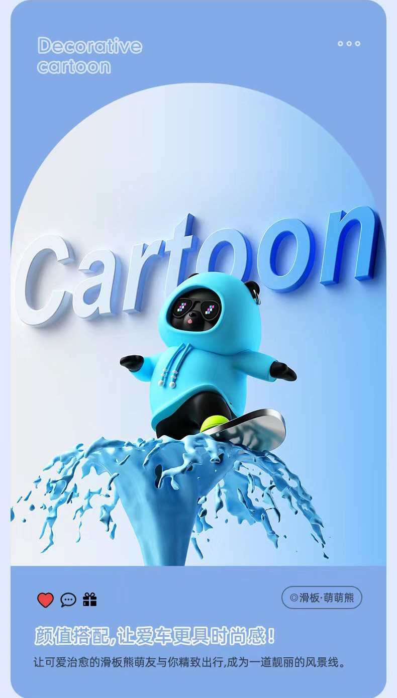 자동차 용품 스케이트 보드 곰 만화 자동차 장식품 이동 곰 장식품 자동차 인테리어 장식품 합금