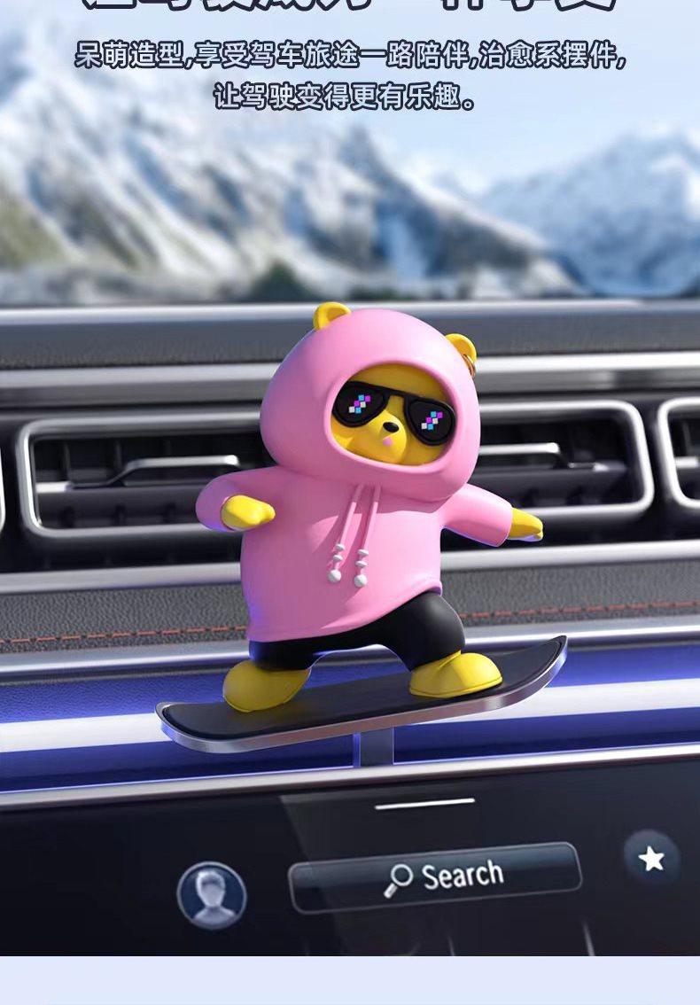 자동차 용품 스케이트 보드 곰 만화 자동차 장식품 이동 곰 장식품 자동차 인테리어 장식품 합금스토어 가기
