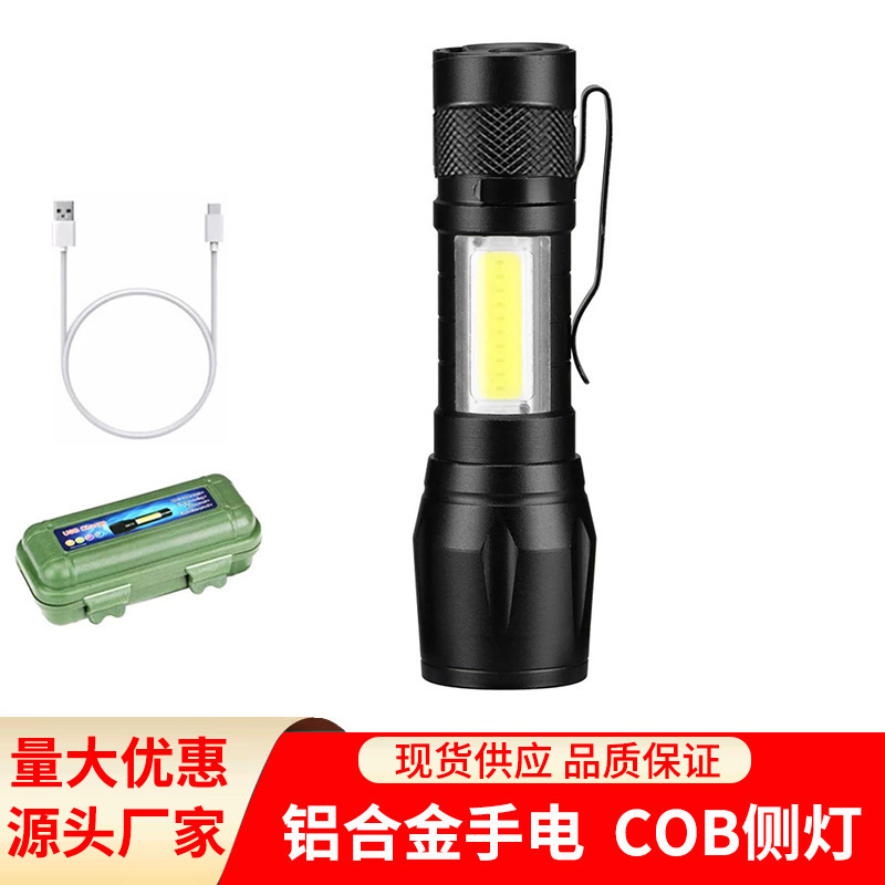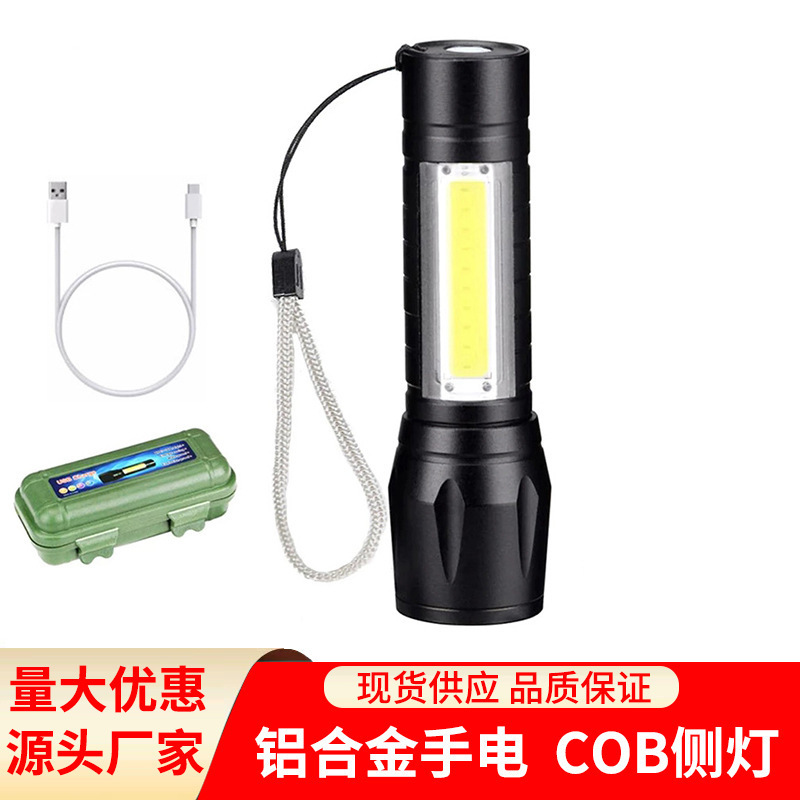 미니 손전등 LED 강력 조명 야외용 USB 충전 초고휘도 COB 작업등 소형 손전등