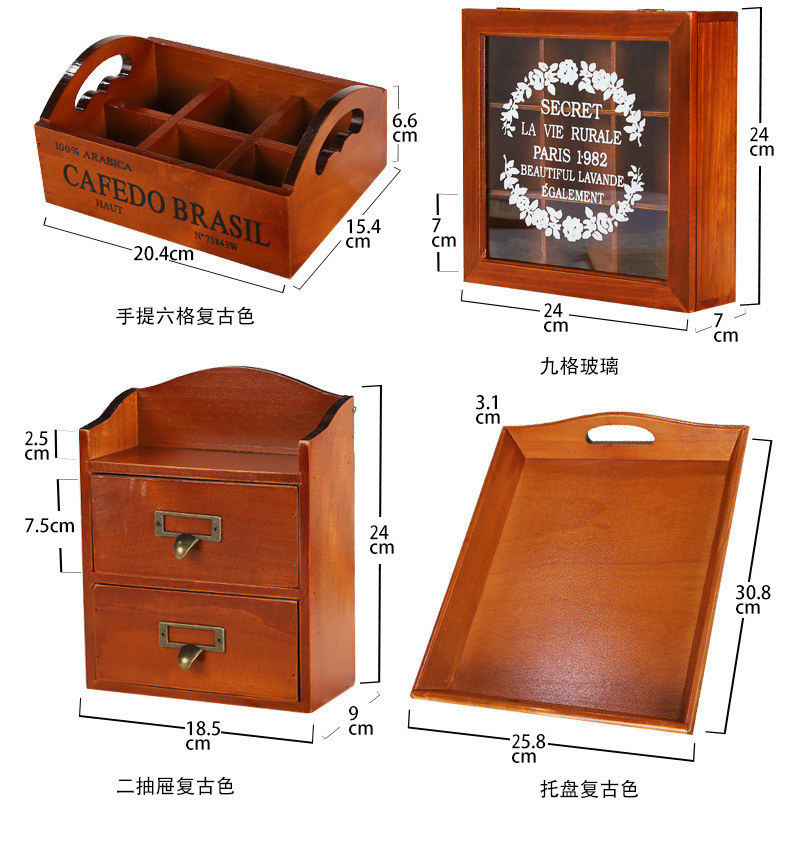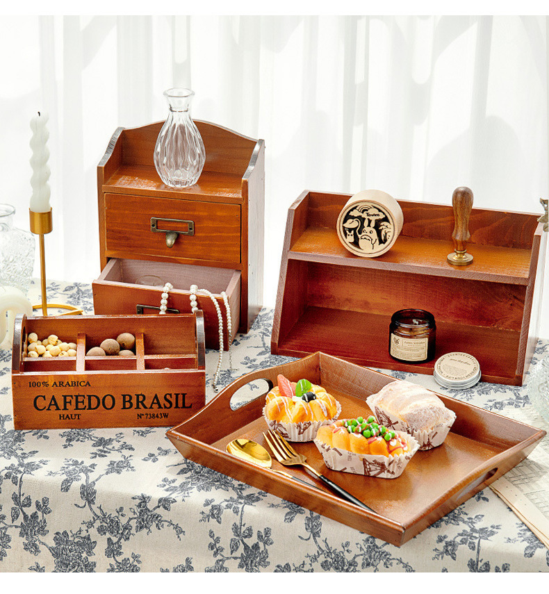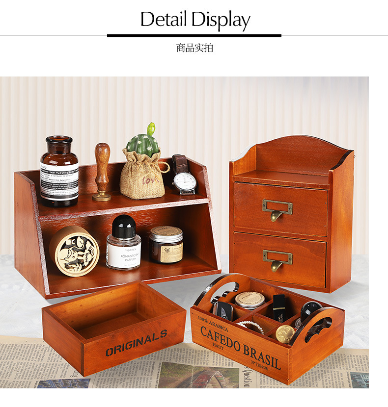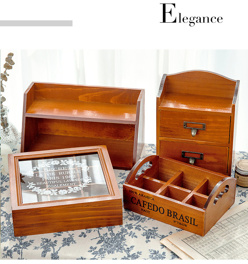 Zakka 레트로 나무 마무리 서랍 상자 나무 상자 도매 다기능 오래된 부식 방지 나무 잡화 저장 상자스토어 가기