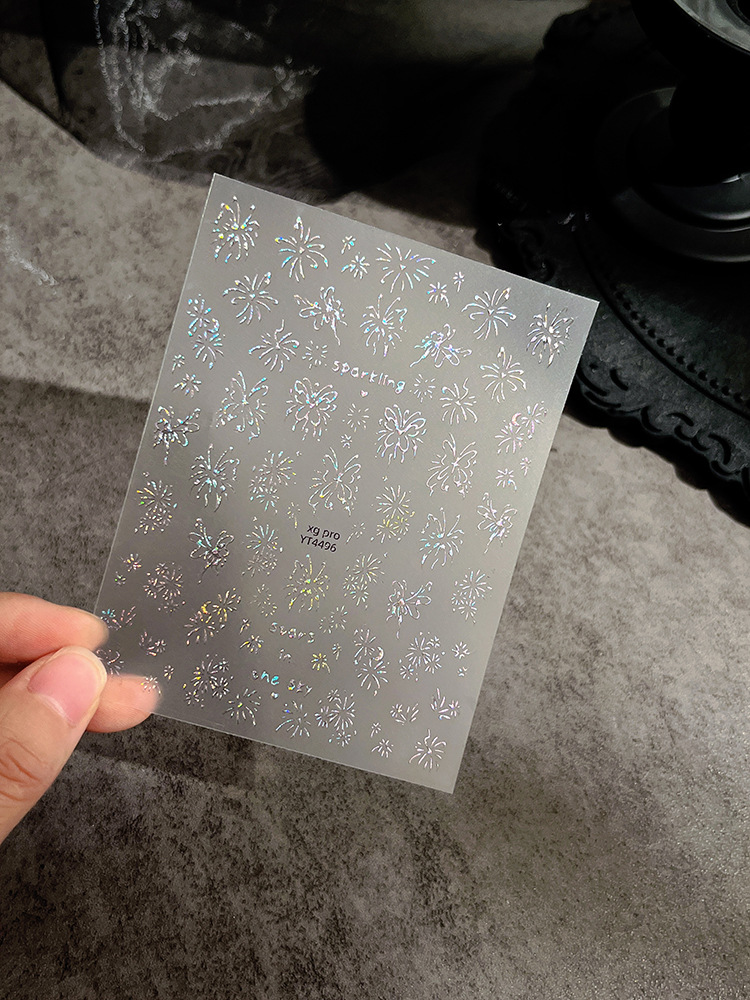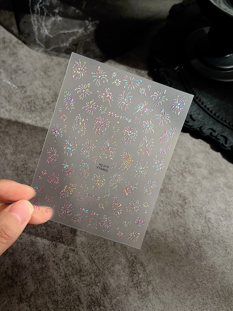 YITU 개미 그림 레이저 나비 불꽃 놀이 예술 스티커 절묘한 매직 라이트 럭셔리 접착 네일 장식 스티커 YT4496