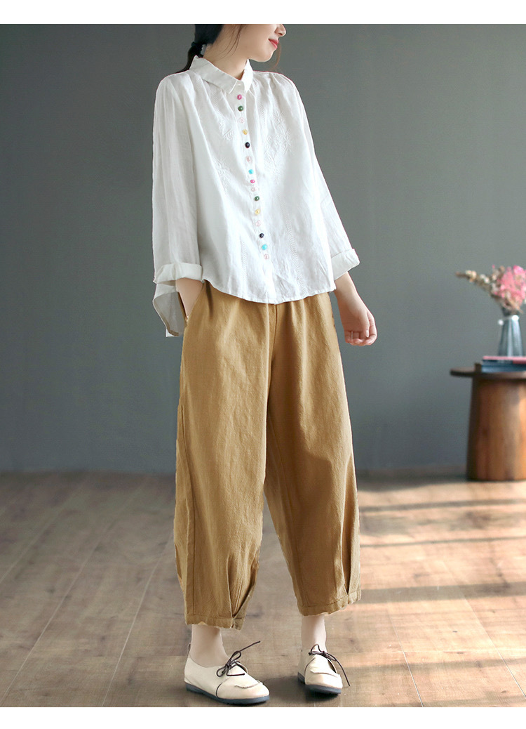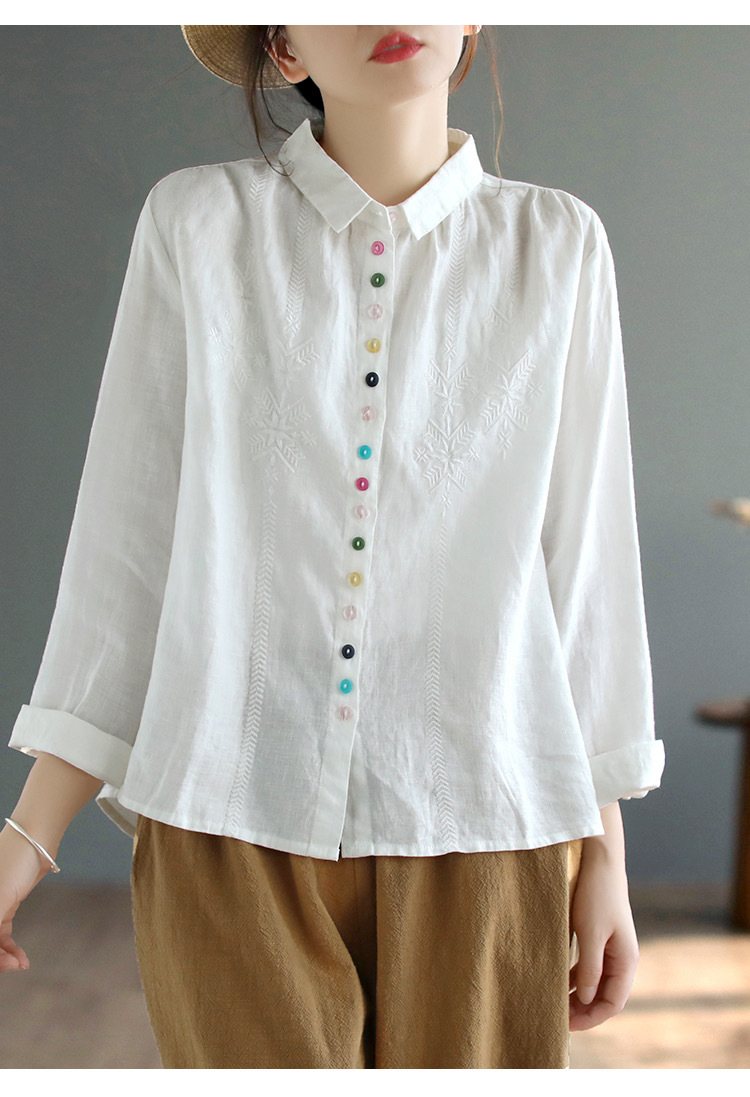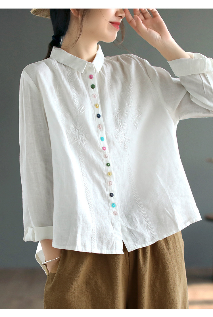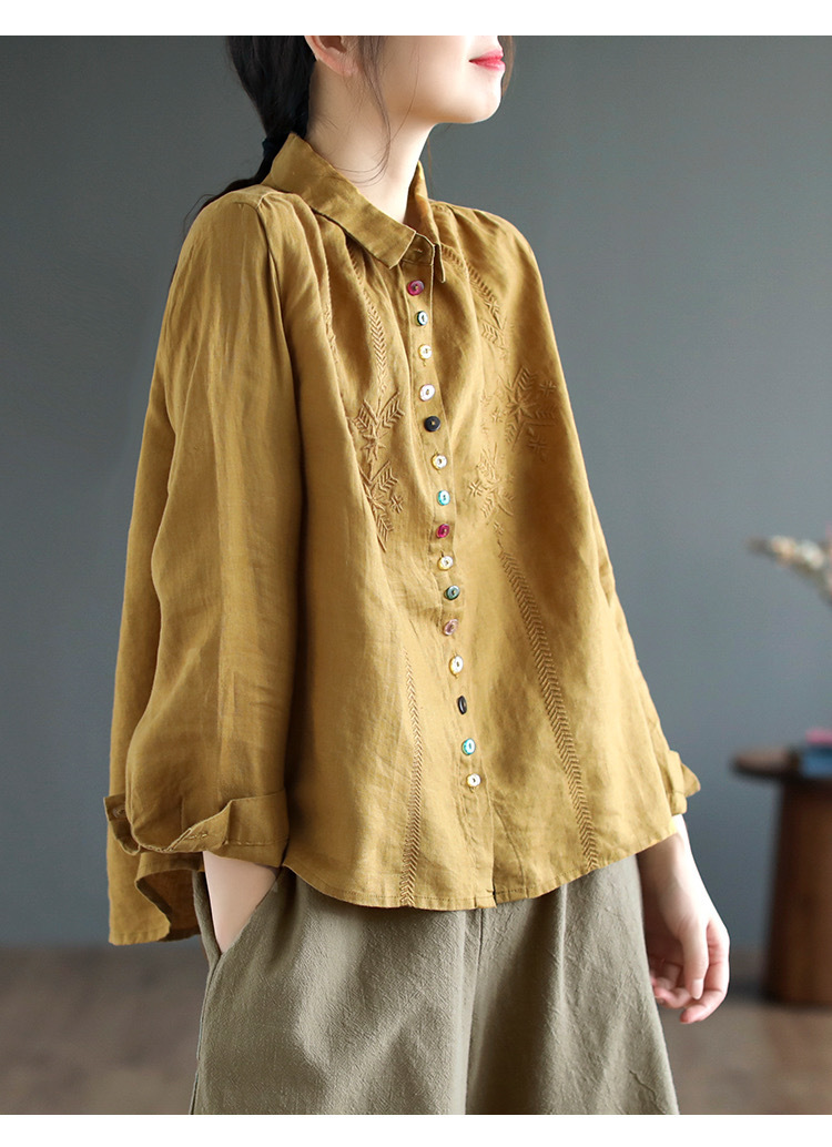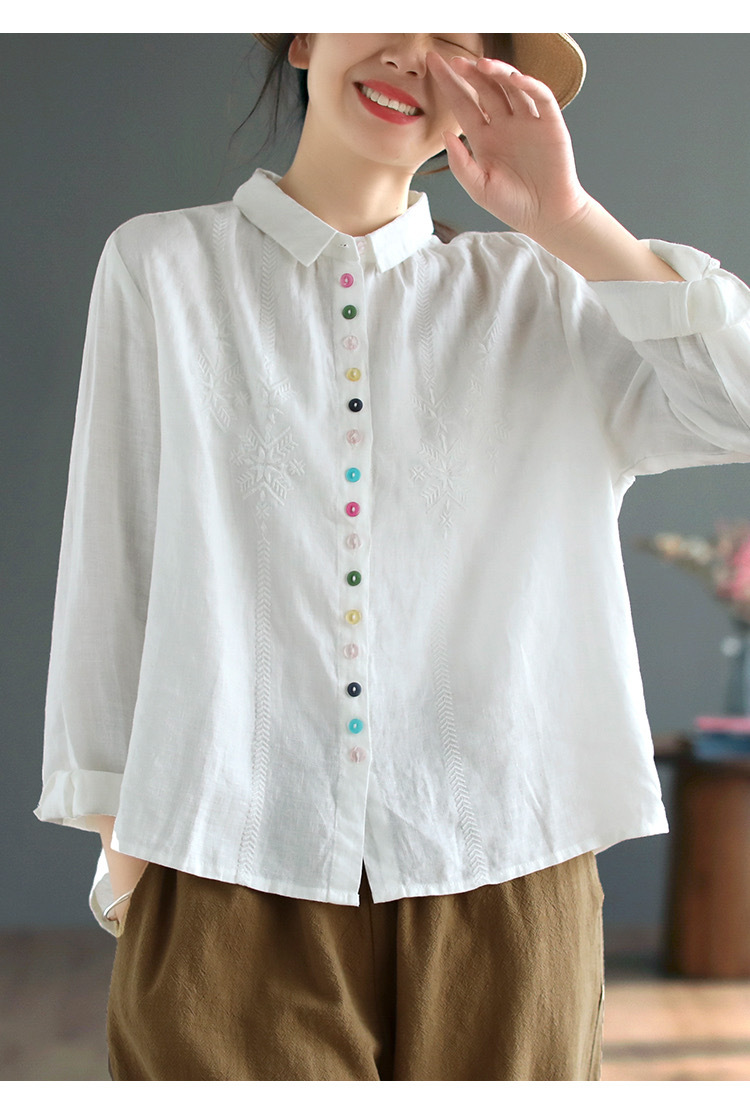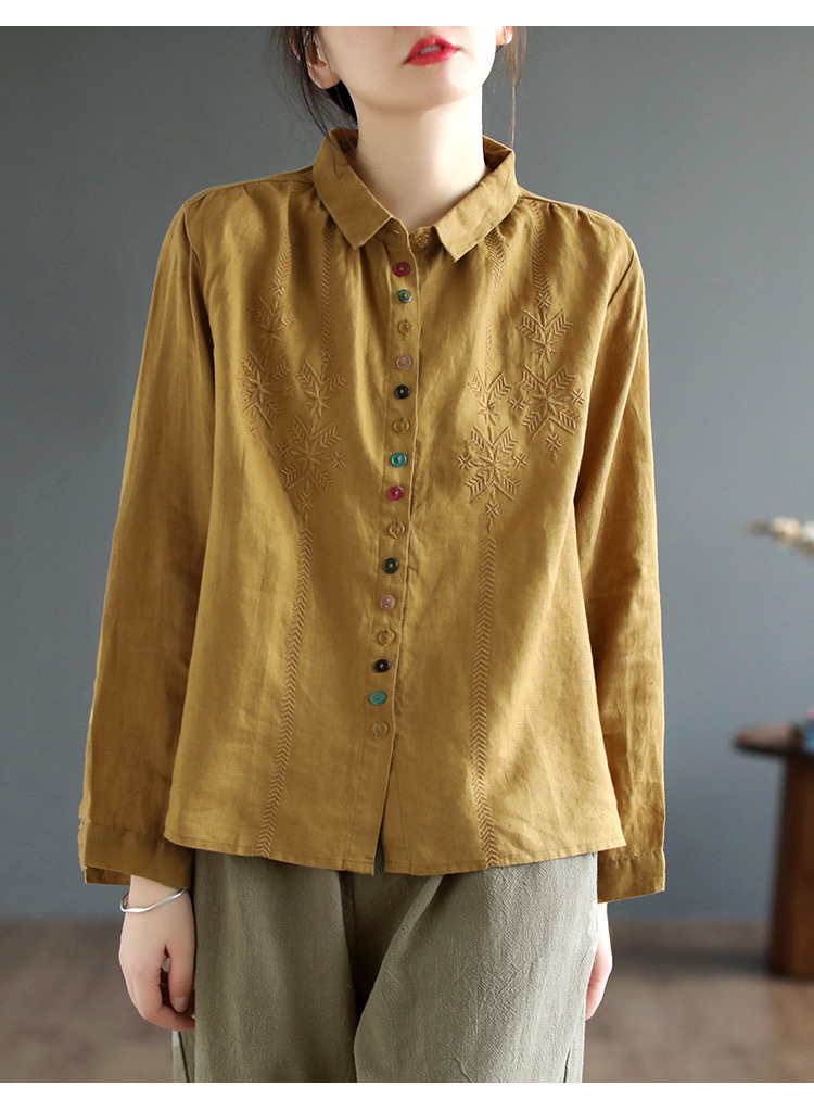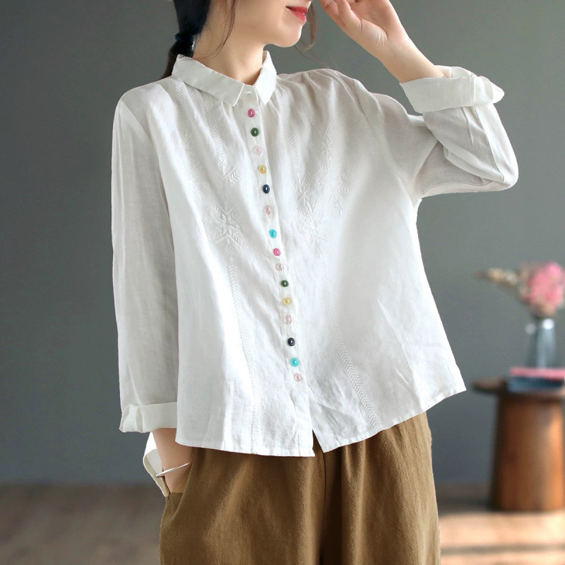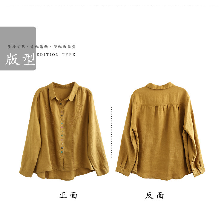 2025 봄과 가을 한국 스타일 느슨한 플러스 사이즈 슬림 자수 서양식 세련된 면화와 리넨 긴 소매 셔츠스토어 가기