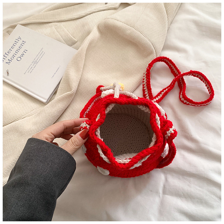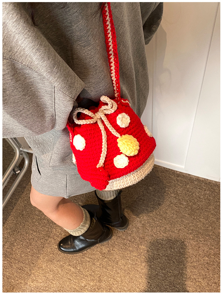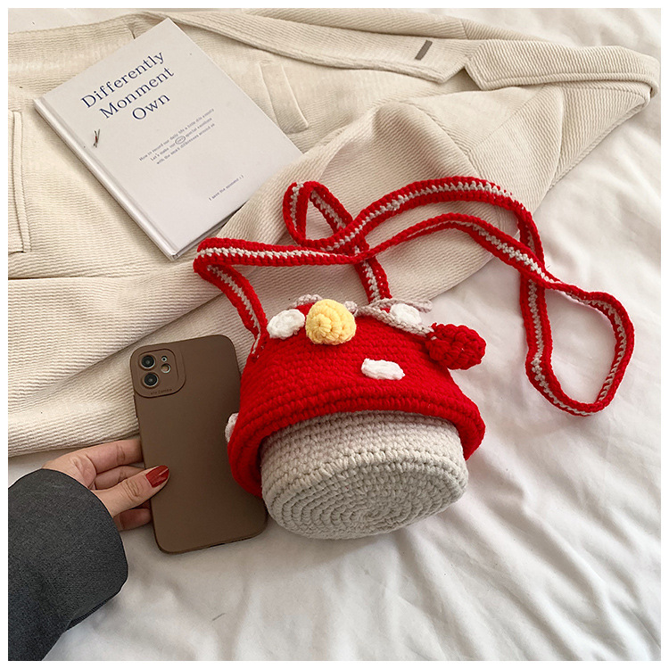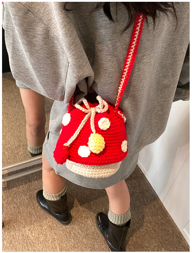 만화 인형 이상한 귀여운 2025 새로운 대형 버섯 니트 가방 완성 된 휴대 전화 가방 크로스 바디 가방 국경스토어 가기