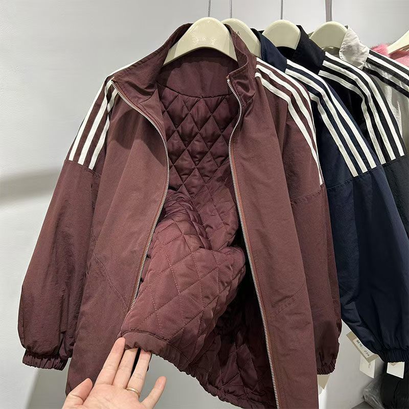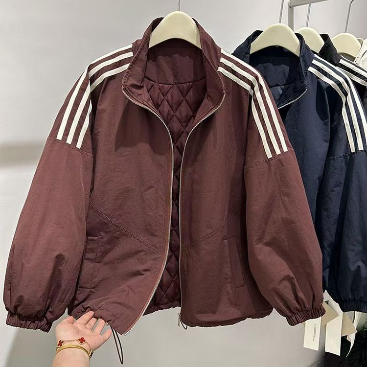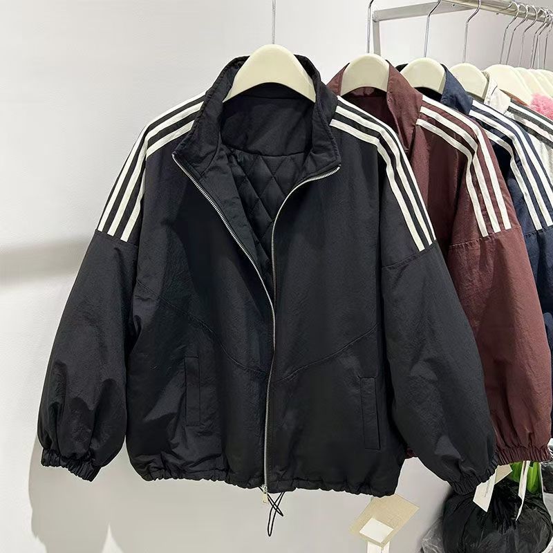 한국 스타일 느슨한 3 바 칼라 가을과 겨울 코튼 두꺼운 캐주얼 재킷 새로운 여자 슬리밍 올매치 코튼 탑
