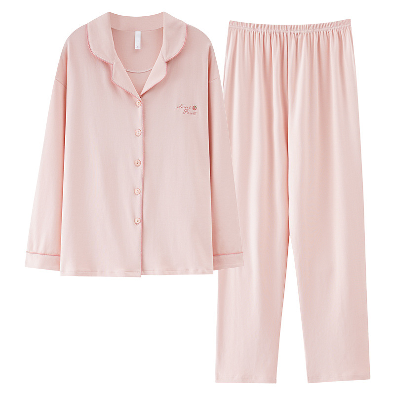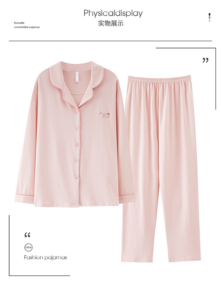 2024 새로운 면 잠옷 여성의 봄과 가을 긴 소매 카디건 간단한 캐주얼 홈 의류 세트