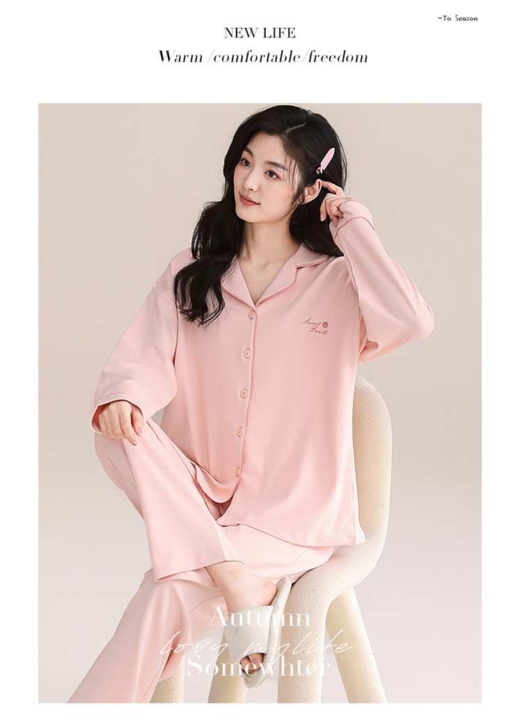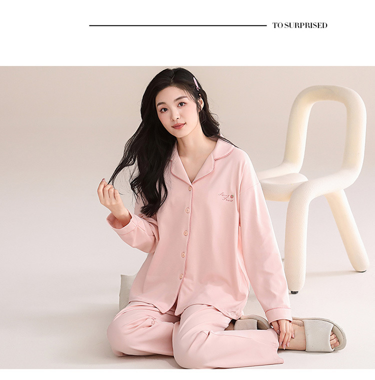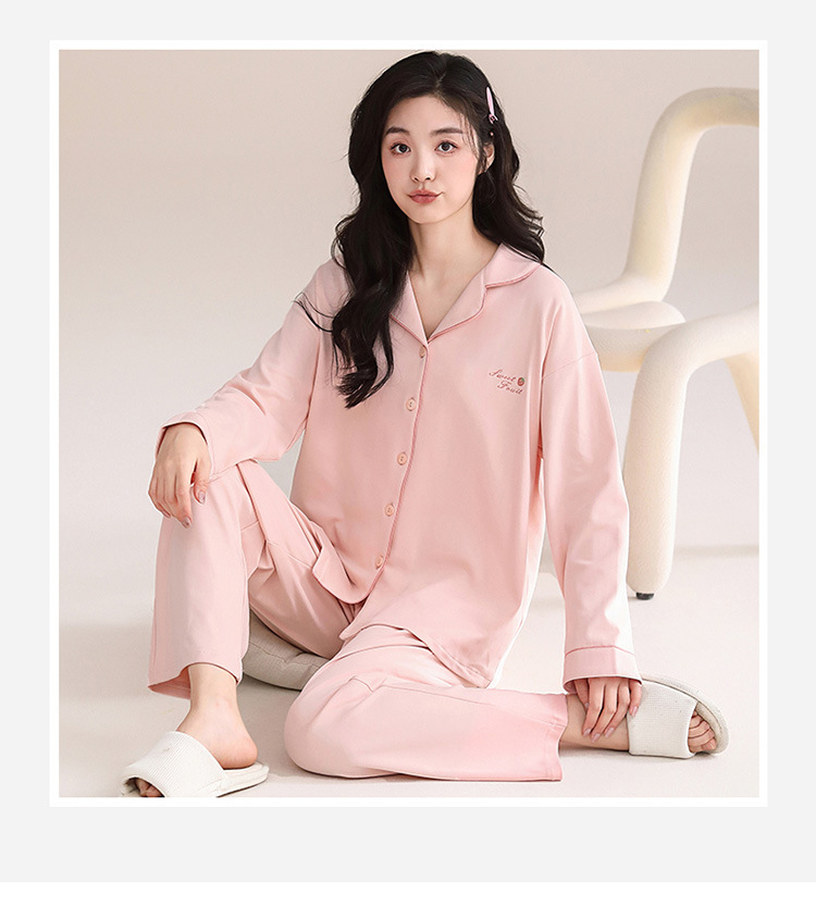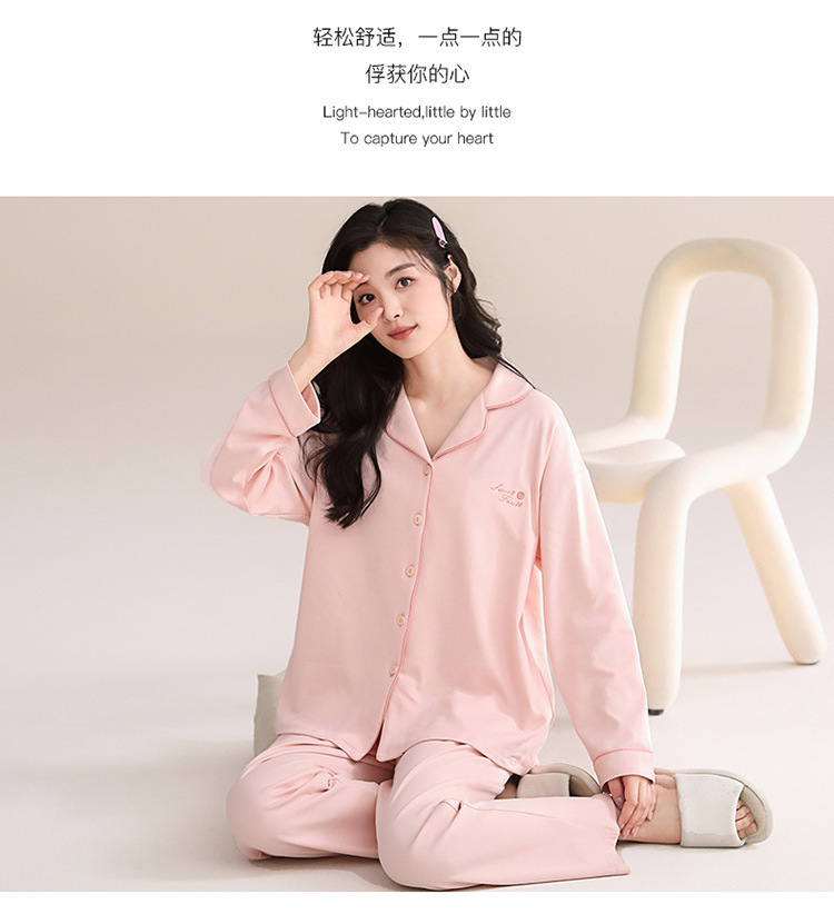 2024 새로운 면 잠옷 여성의 봄과 가을 긴 소매 카디건 간단한 캐주얼 홈 의류 세트스토어 가기