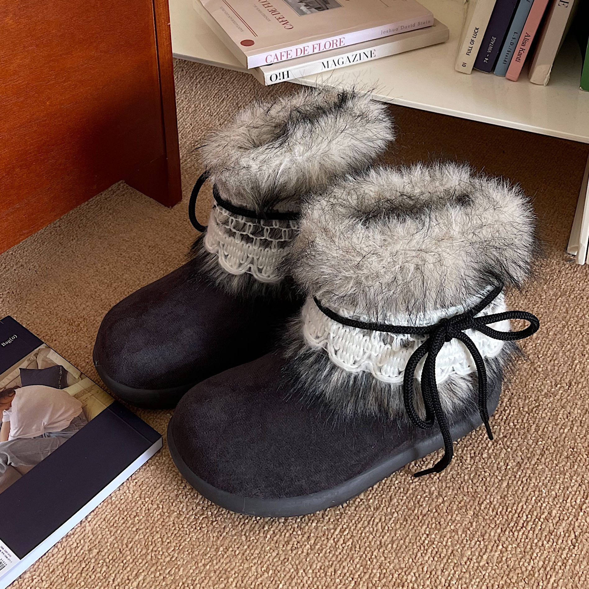 레트로 캐주얼 조커 스노우 부츠 여성 2024 가을과 겨울 새로운 두꺼운 털복숭이 기모 두꺼운 따뜻한 면화 신발스토어 가기