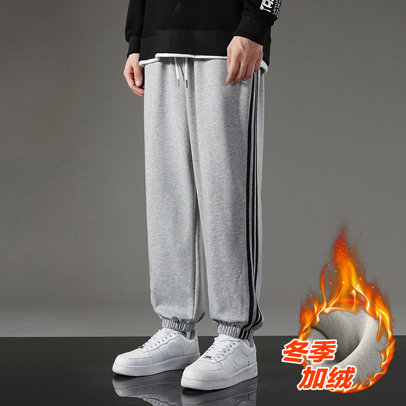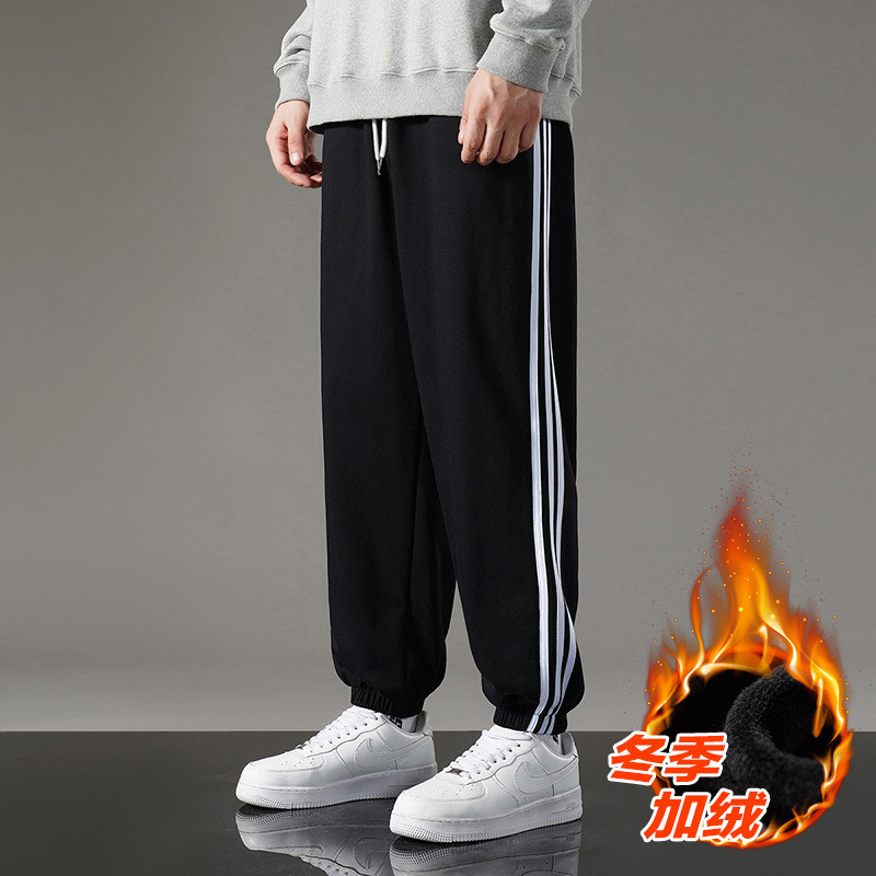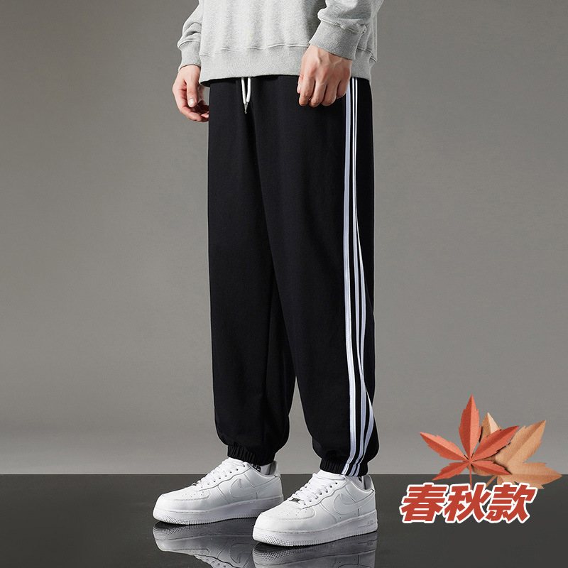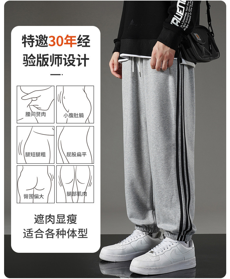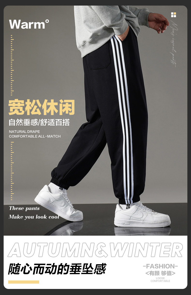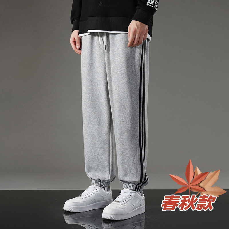 봄과 가을 캐주얼 바지 남자 플러스 사이즈 느슨한 기모 다리 스포츠 바지 트리플 바 코튼 올 매치 커플 운동복스토어 가기