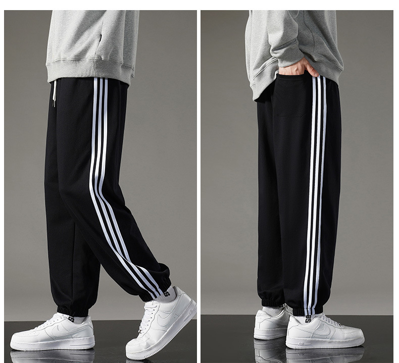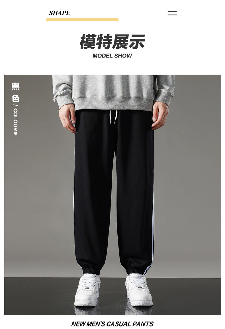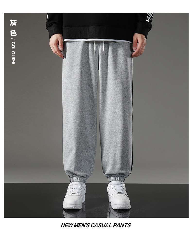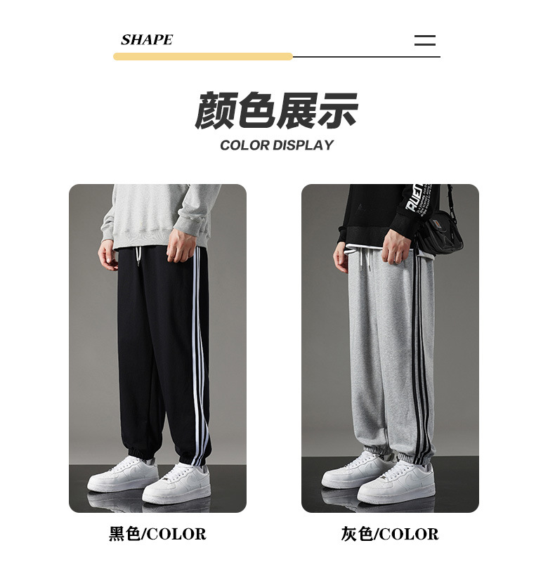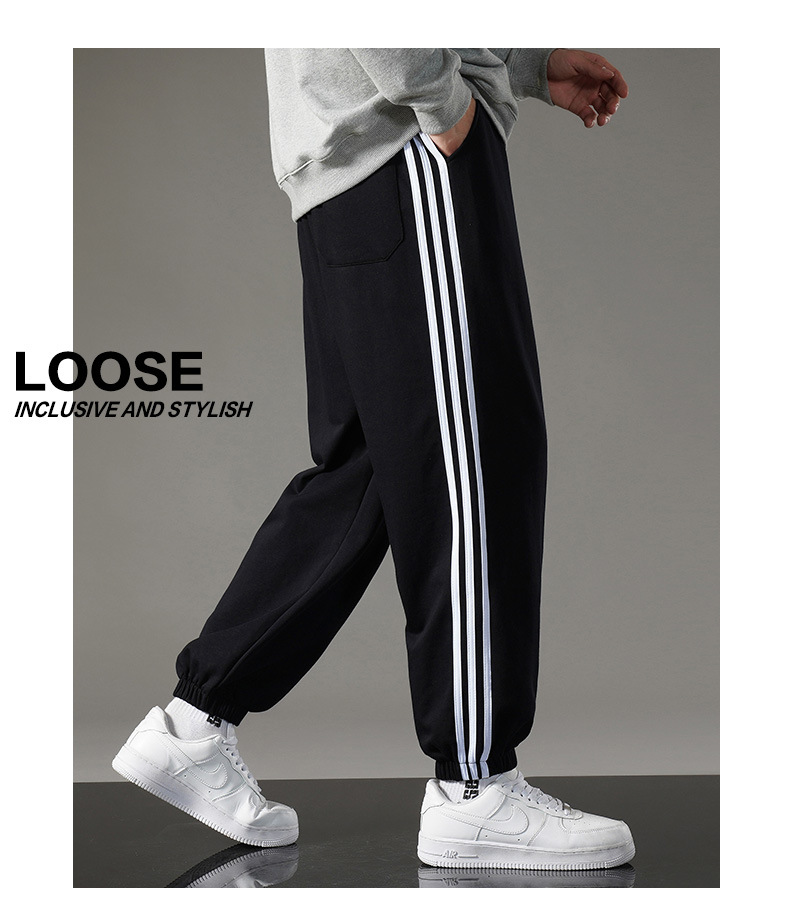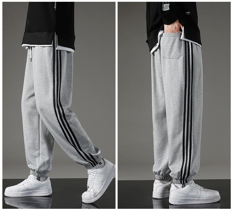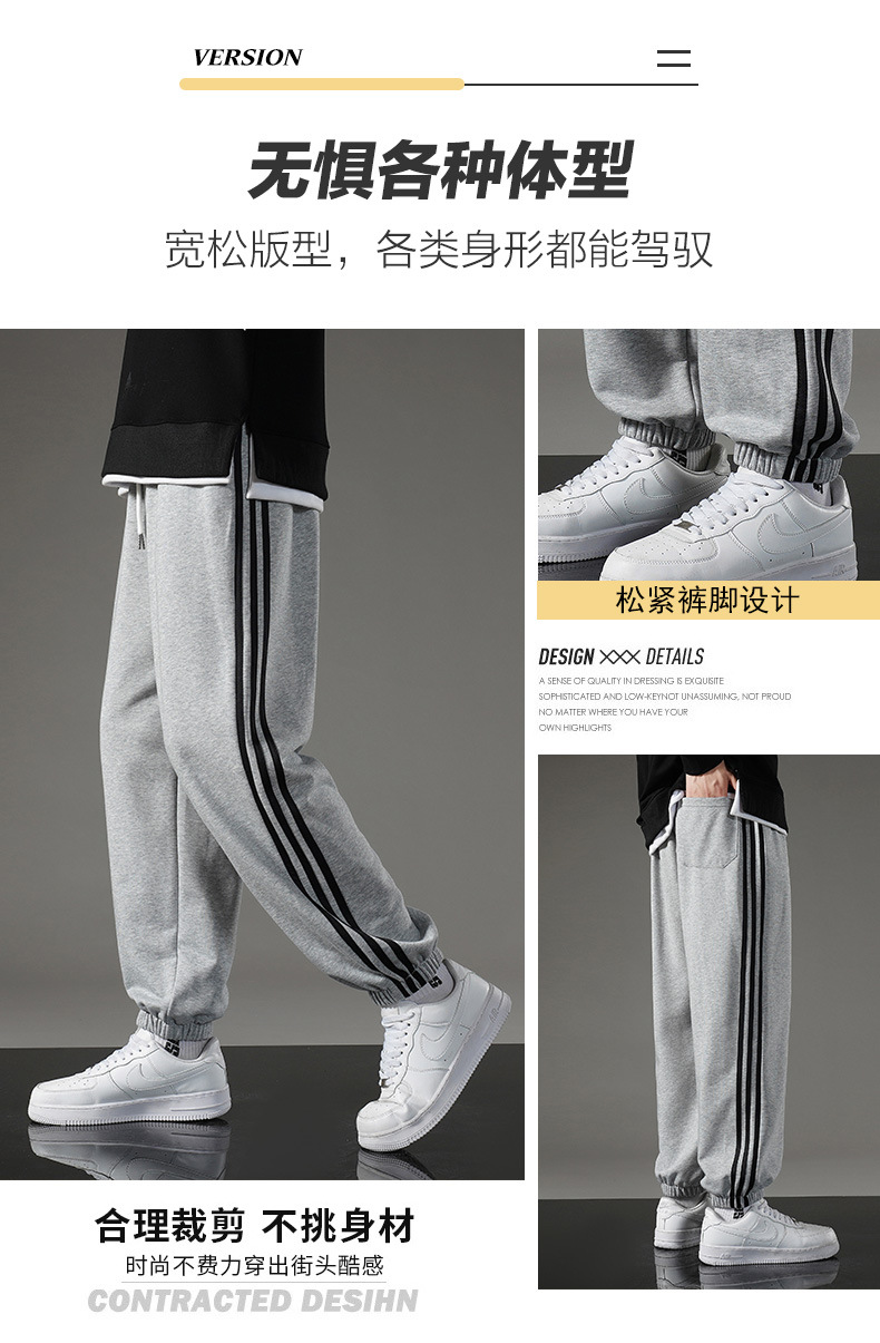 봄과 가을 캐주얼 바지 남자 플러스 사이즈 느슨한 기모 다리 스포츠 바지 트리플 바 코튼 올 매치 커플 운동복스토어 가기