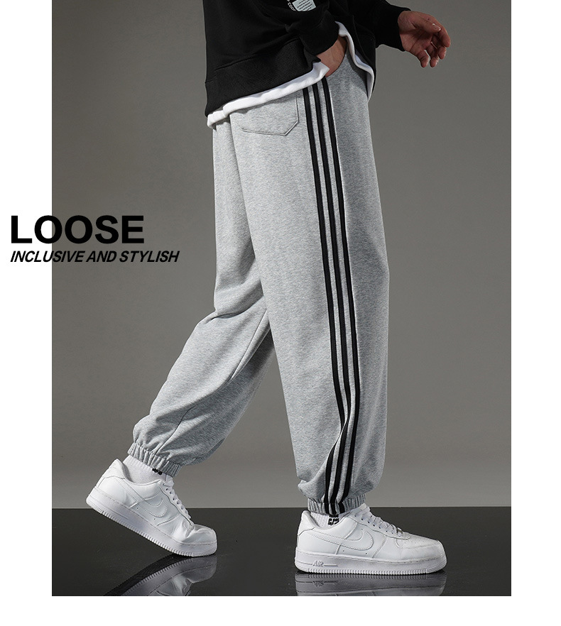 봄과 가을 캐주얼 바지 남자 플러스 사이즈 느슨한 기모 다리 스포츠 바지 트리플 바 코튼 올 매치 커플 운동복