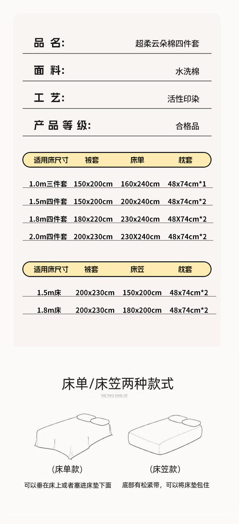 [만화 큰 귀] 구름면 슈퍼 소프트 4 피스 세트 3 피스 세트 기숙사 침대 시트 퀼트 커버 침대 커버 침대 커버 공장 대외 무역스토어 가기