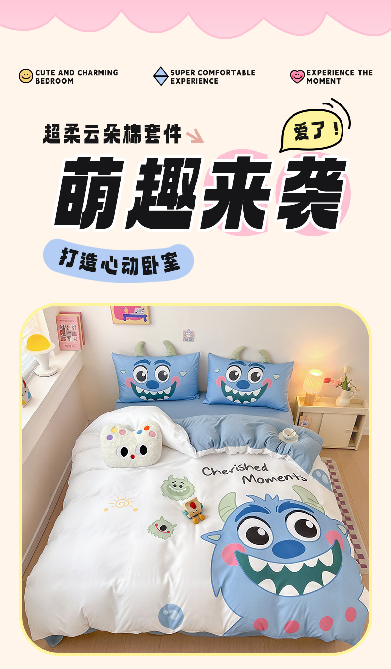 [만화 큰 귀] 구름면 슈퍼 소프트 4 피스 세트 3 피스 세트 기숙사 침대 시트 퀼트 커버 침대 커버 침대 커버 공장 대외 무역
