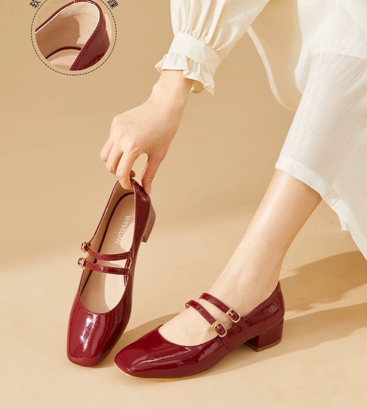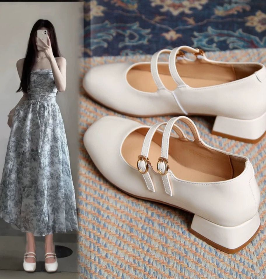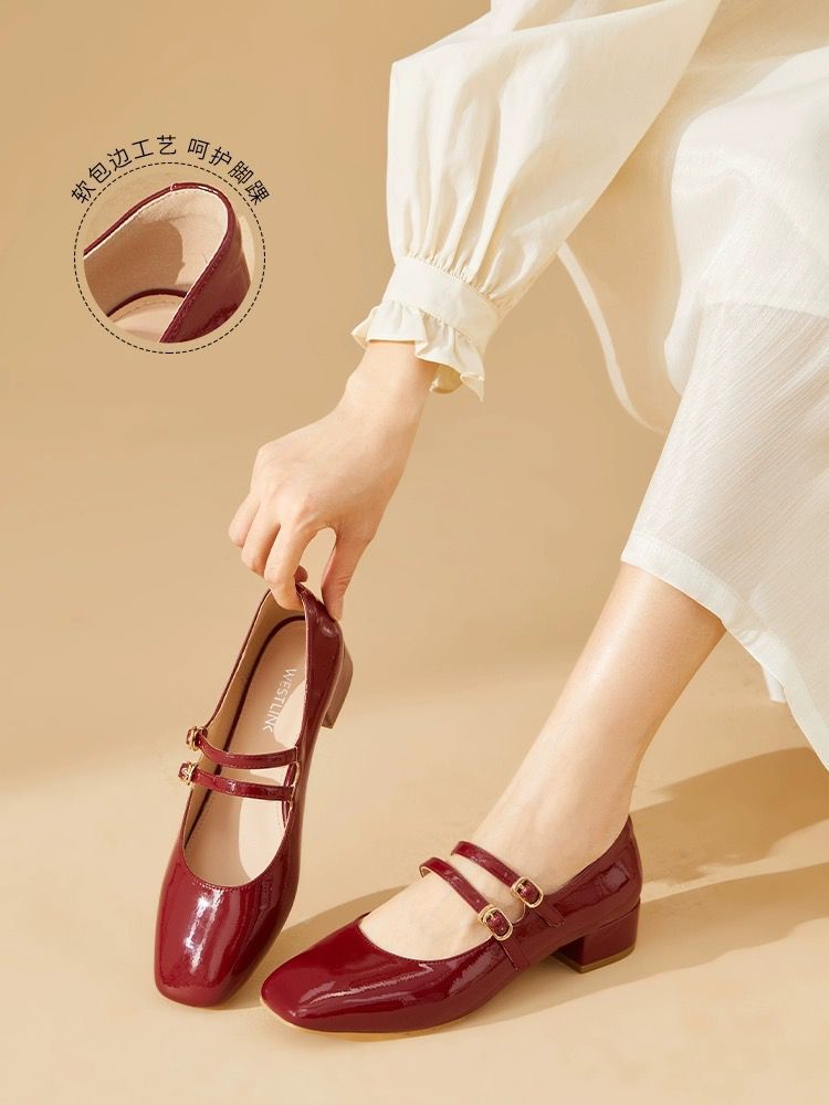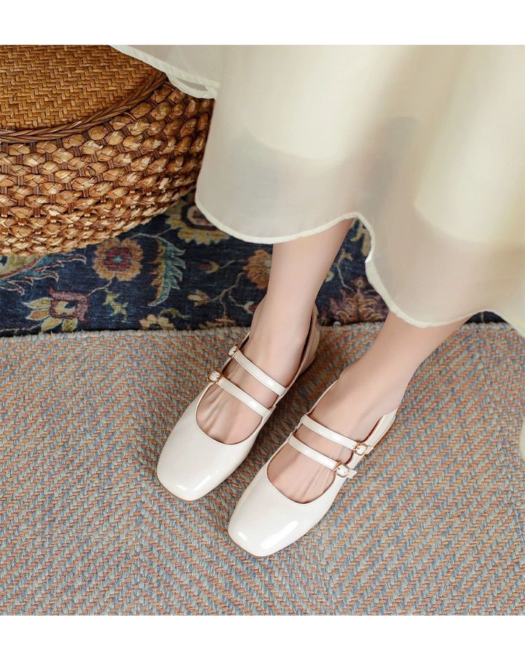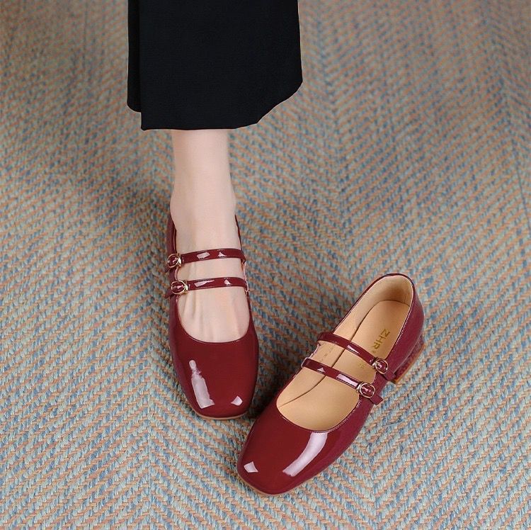 두꺼운 힐 버클 메리 제인 신발 얕은 입 싱글 레이어 신발 올매치 패셔너블 로퍼 2024 한국식 우아한 가죽 신발스토어 가기