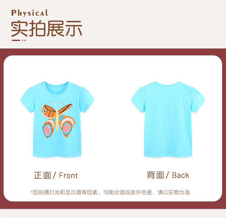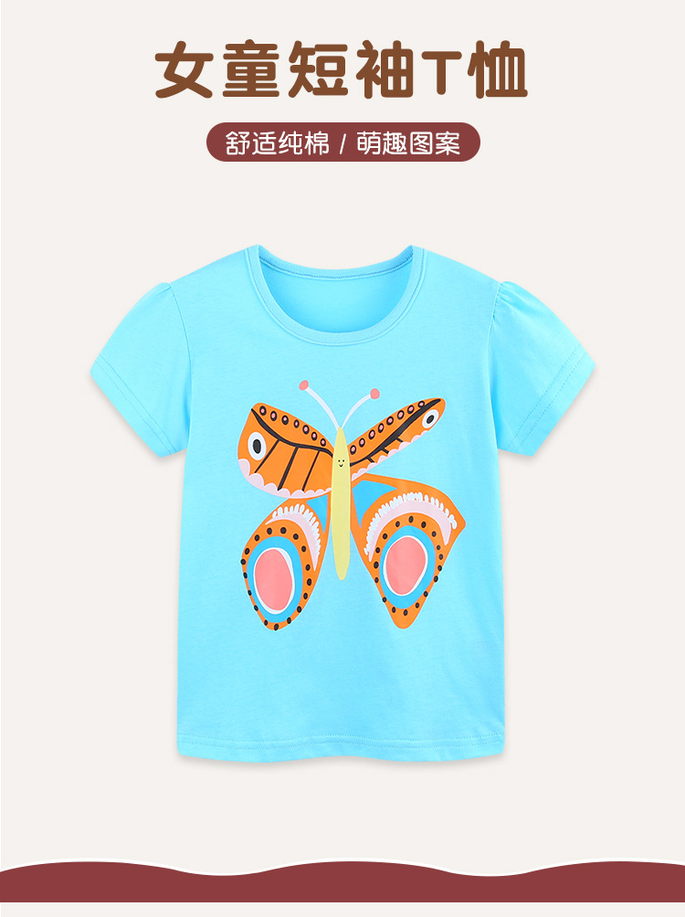 여름 새로운 반팔 어린이 티셔츠 유럽과 미국 스타일의 나비 인쇄 소녀 티셔츠 국경 간 공급 어린이 스포츠 탑스토어 가기