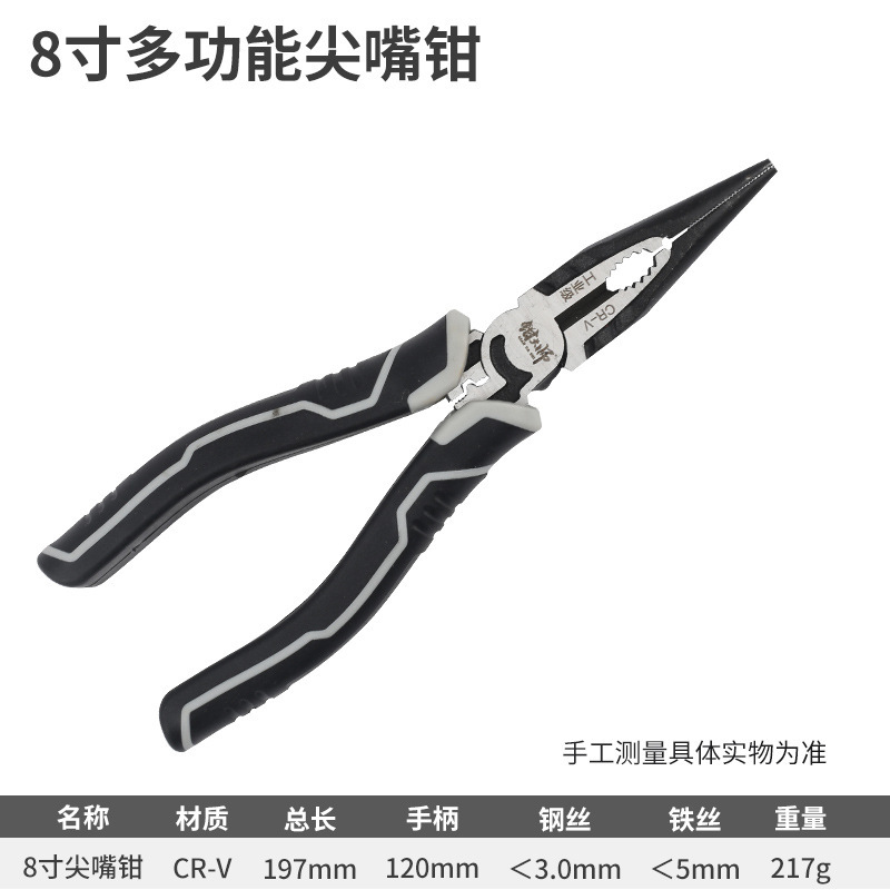 산업 등급 편심 노동 절약 와이어 펜치 크롬 바나듐 스틸 Cr_V 뾰족한 코 펜치 전기 기술자 유지 보수 대각선 펜치 8 인치 Vice
