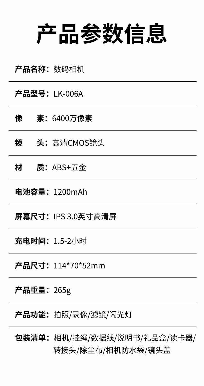 CCD 학생 고화질 4K 디지털 카메라 아름다운 사진 높은 색상 가치 홈 어린이 휴대용 전문 사진 LK006A