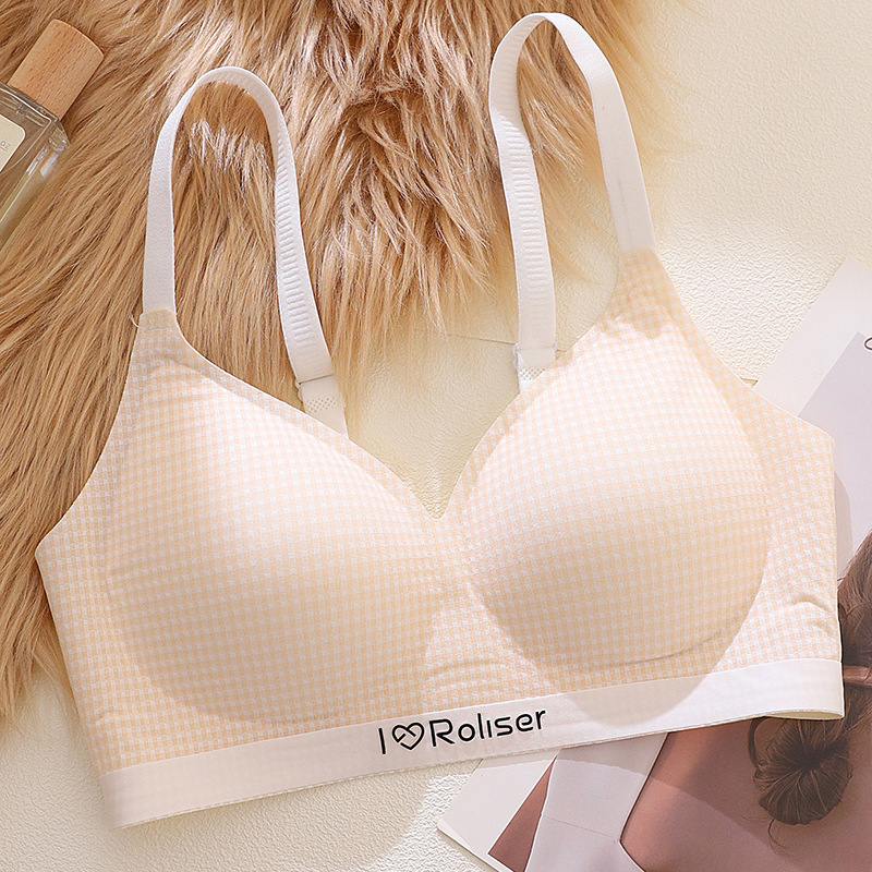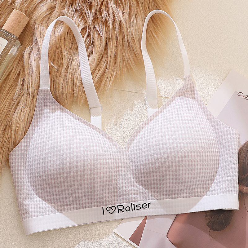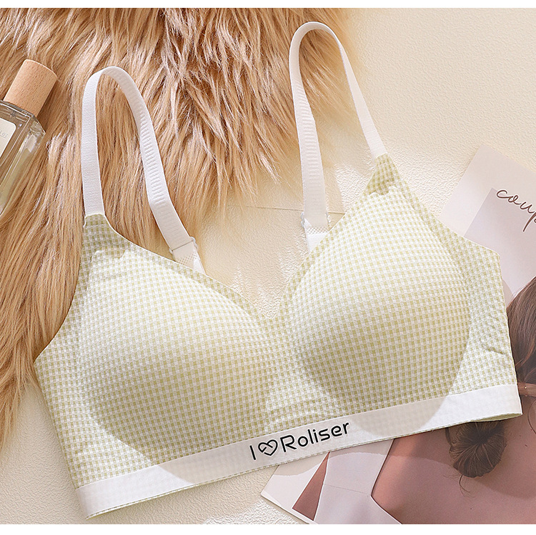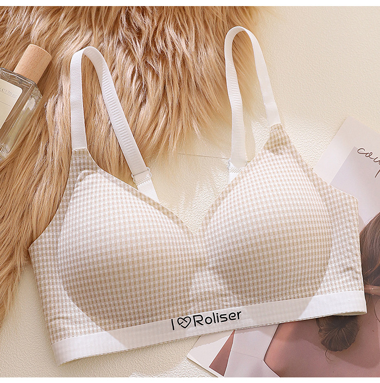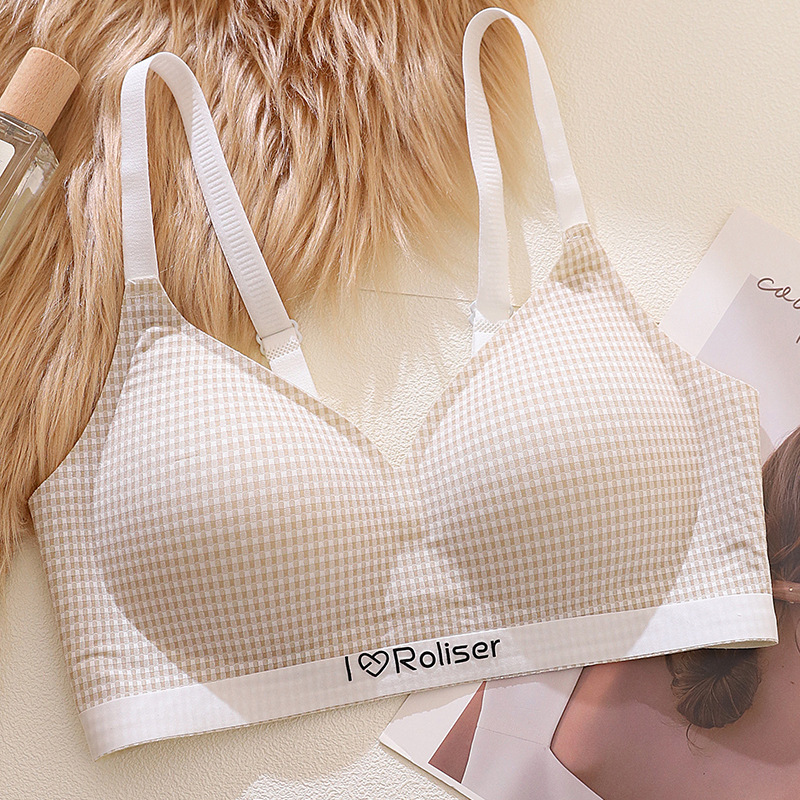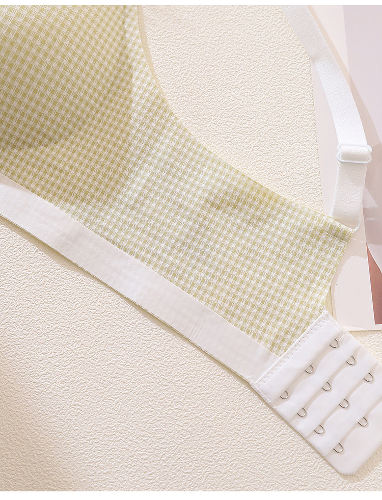 [0.5cm 얇은 컵] 2025 봄과 여름 새로운 스타일 체크 무늬 문학 스타일 소녀 학생 스틸 링 브래지어 없음스토어 가기