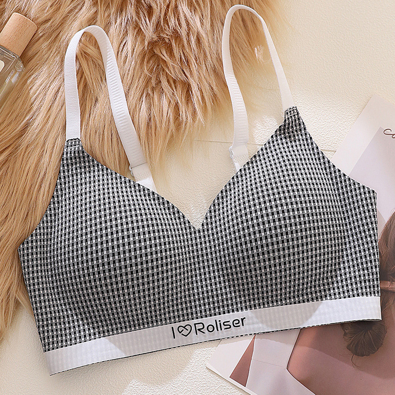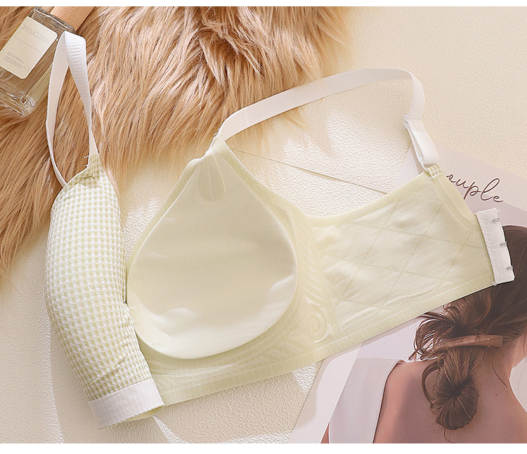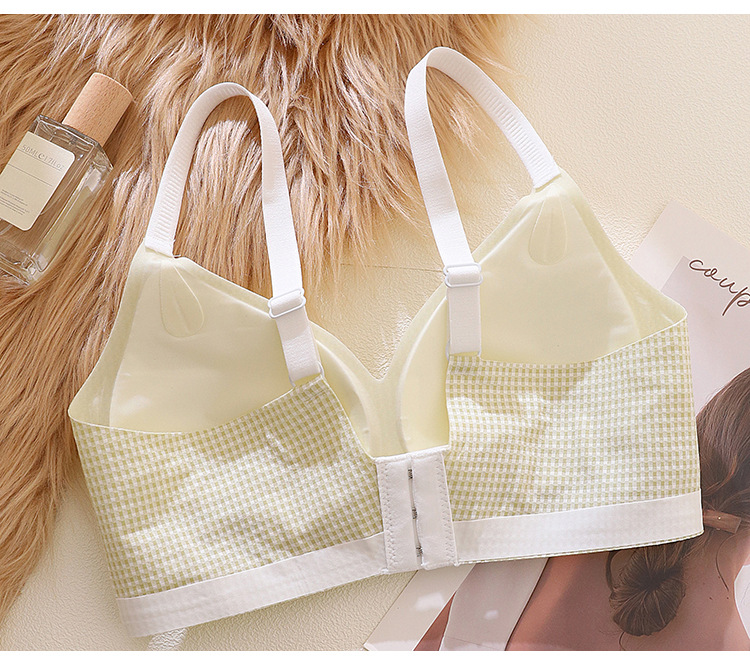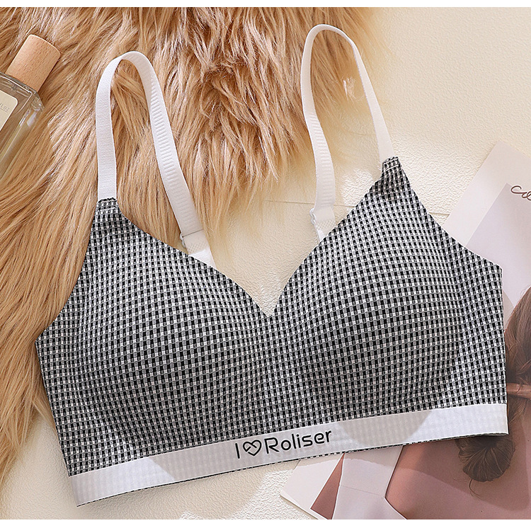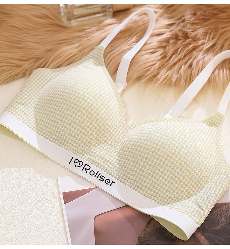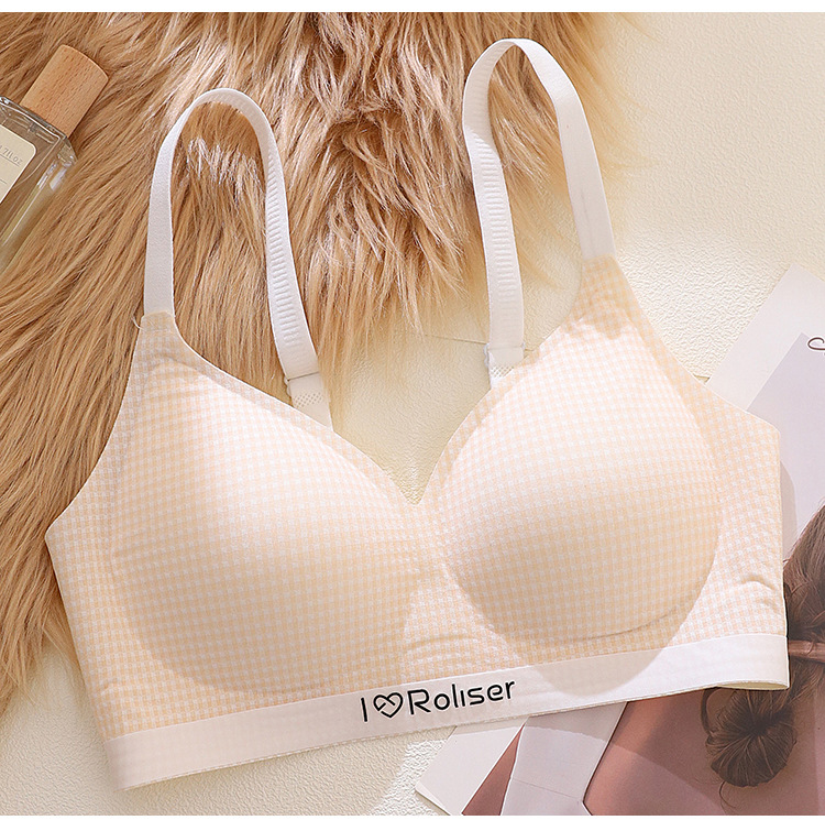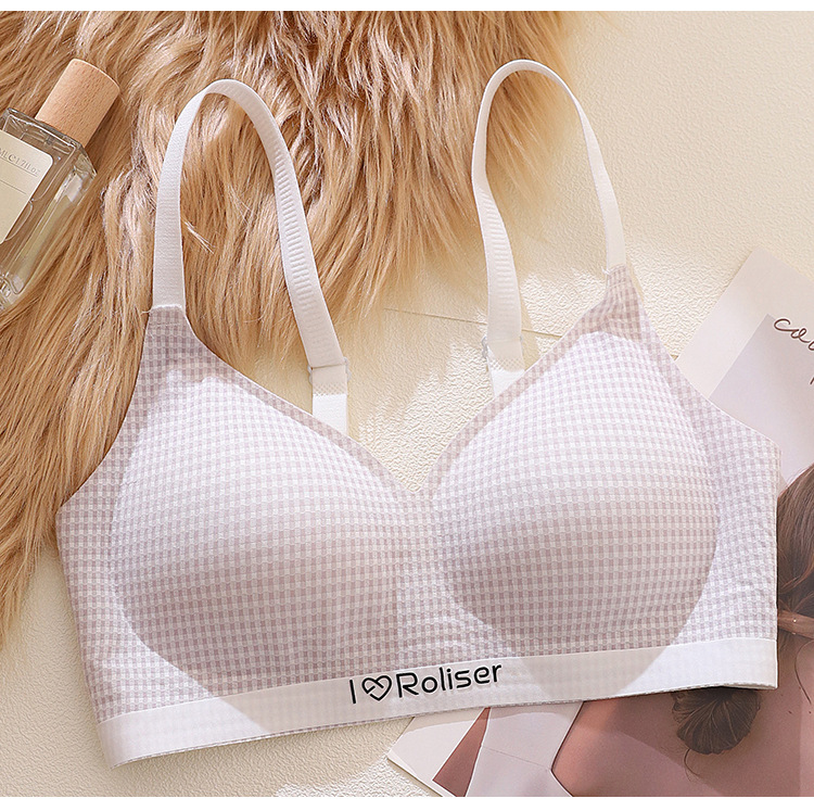 [0.5cm 얇은 컵] 2025 봄과 여름 새로운 스타일 체크 무늬 문학 스타일 소녀 학생 스틸 링 브래지어 없음스토어 가기