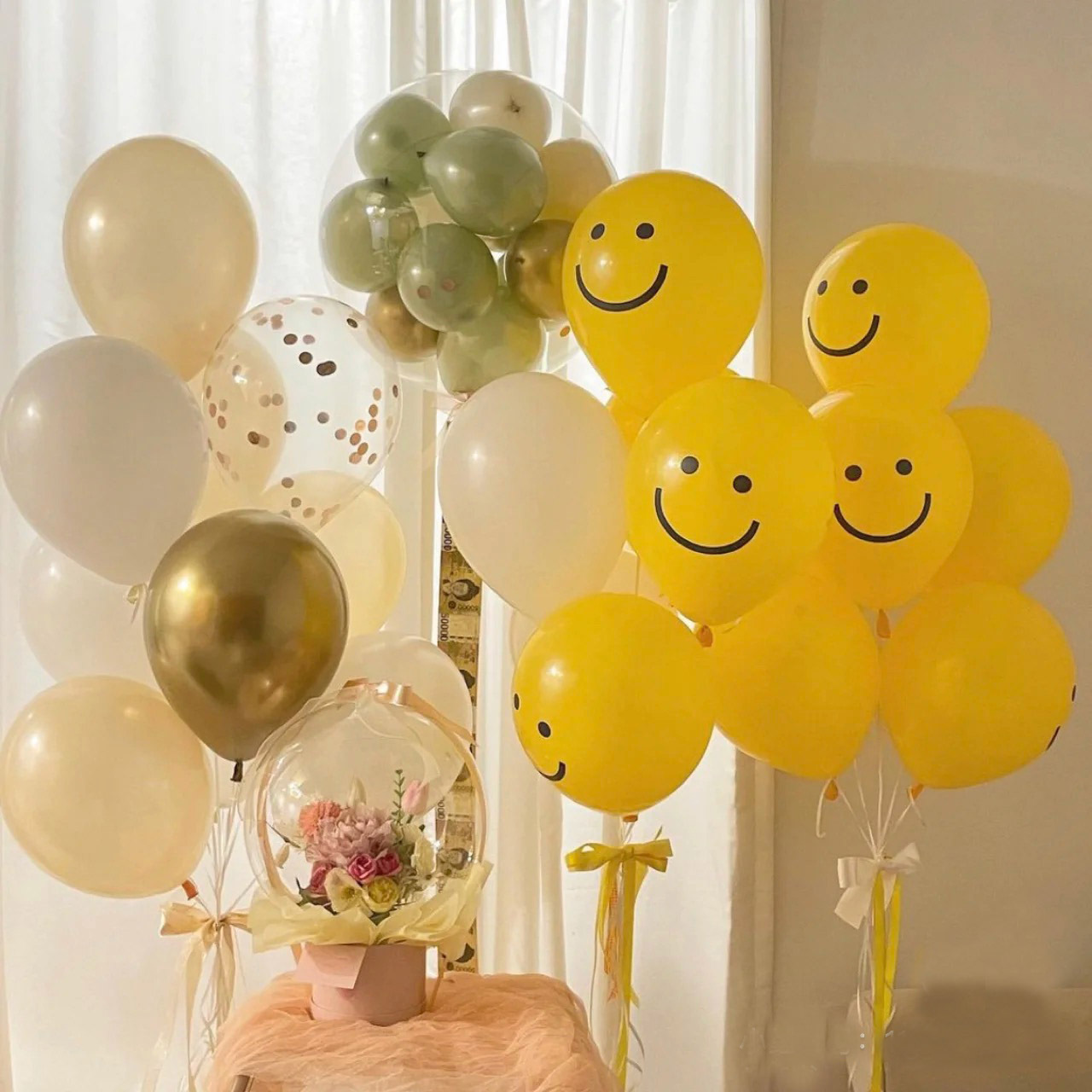 Ins 한국 웃는 얼굴 풍선 10 인치 다크 옐로우 생일 결혼식 장식 그물 빨간 사진 라텍스 풍선 도매스토어 가기