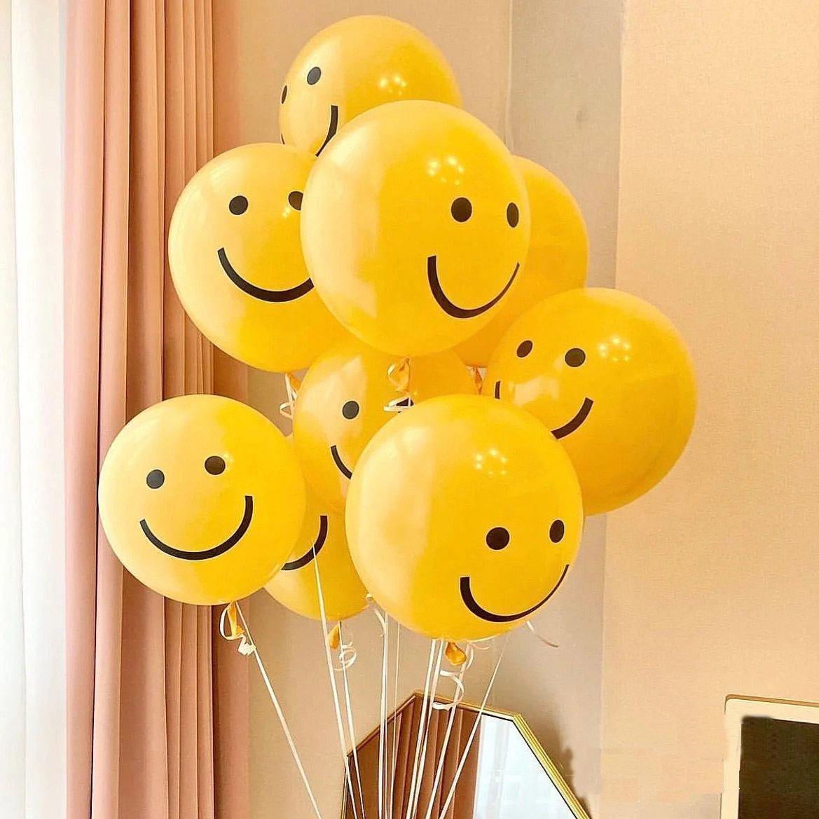 Ins 한국 웃는 얼굴 풍선 10 인치 다크 옐로우 생일 결혼식 장식 그물 빨간 사진 라텍스 풍선 도매