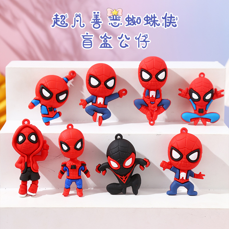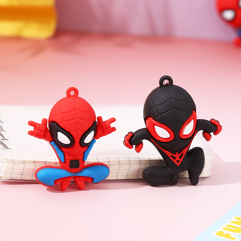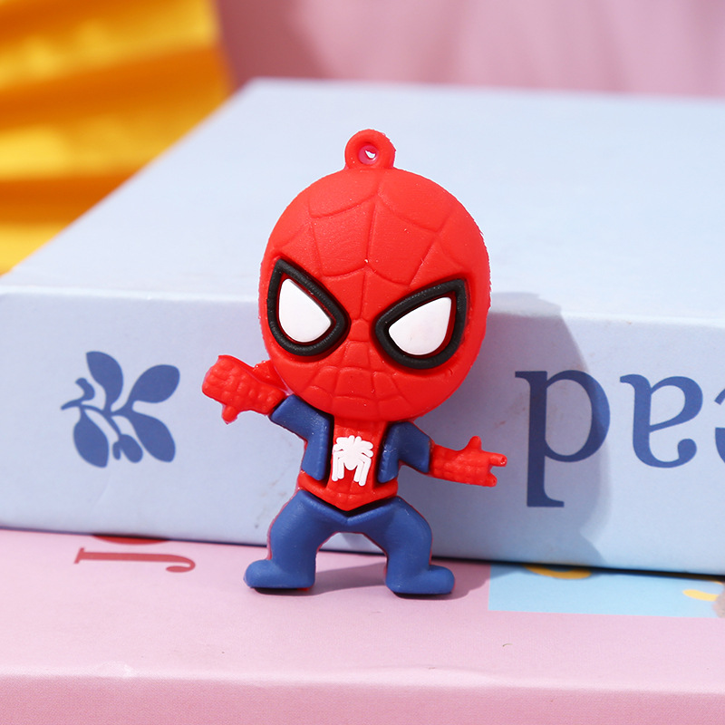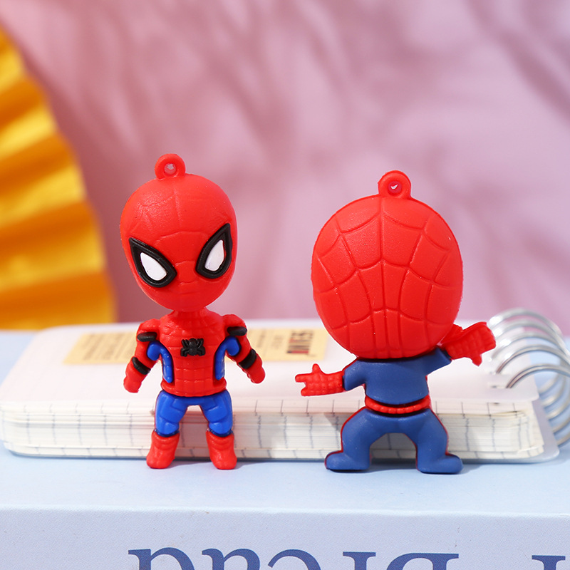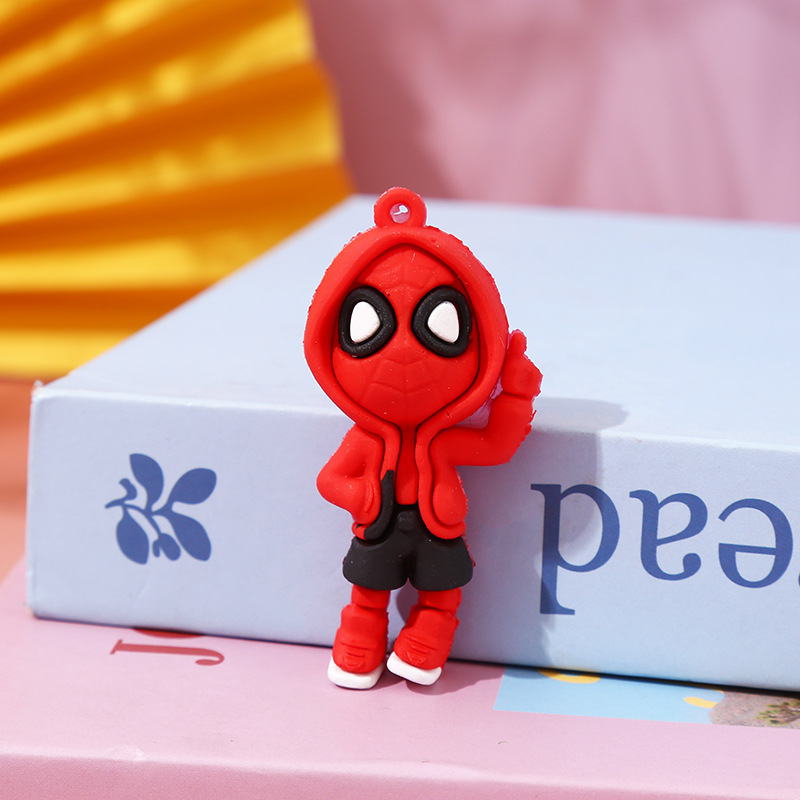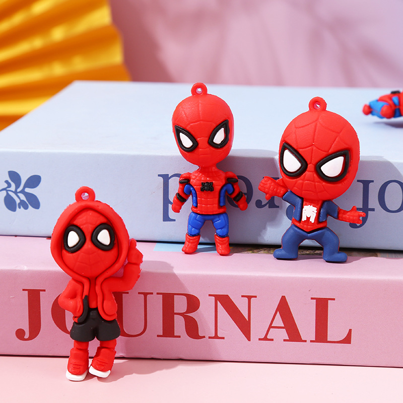 만화 스파이더 맨 키 체인 인형 액세서리 PVC 실리콘 키 체인 걸이 가방 펜던트 작은 선물