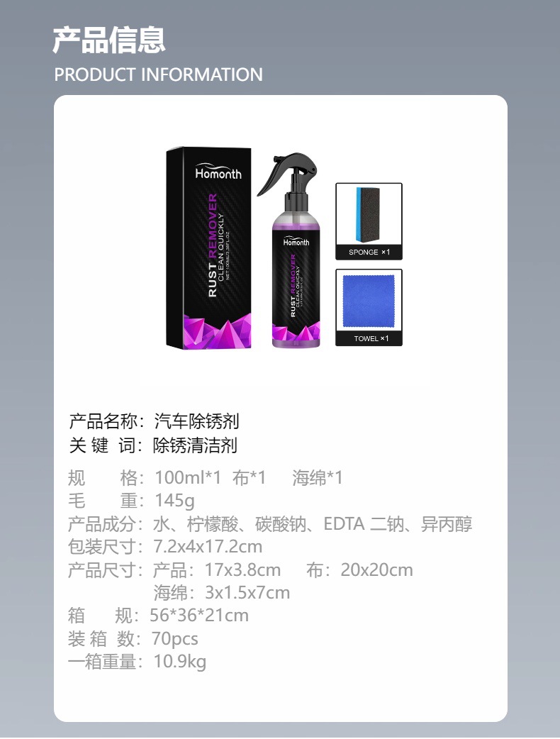 Homonth 자동차 녹 제거제 금속 부품 녹 방지 청소 보수 안티 산화 녹 제거 변환 청소기스토어 가기