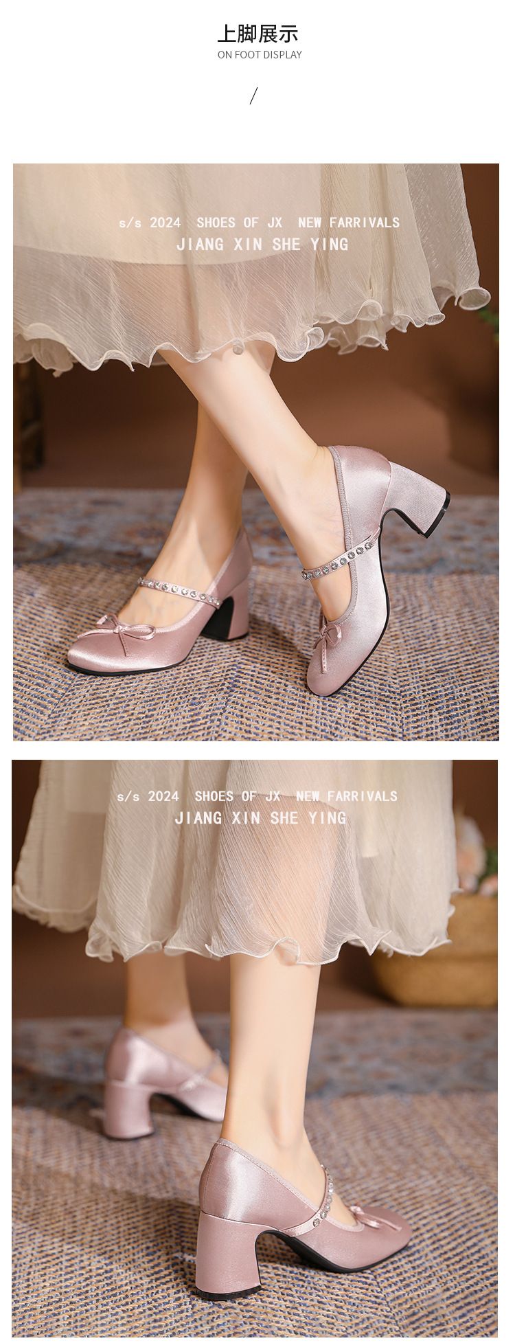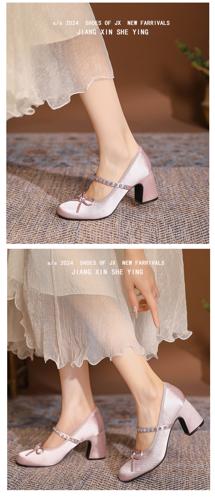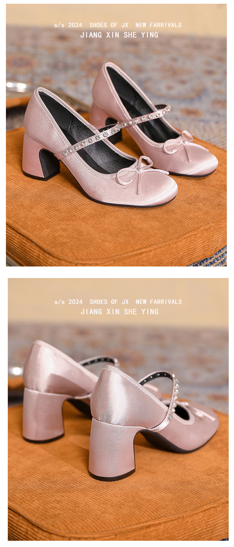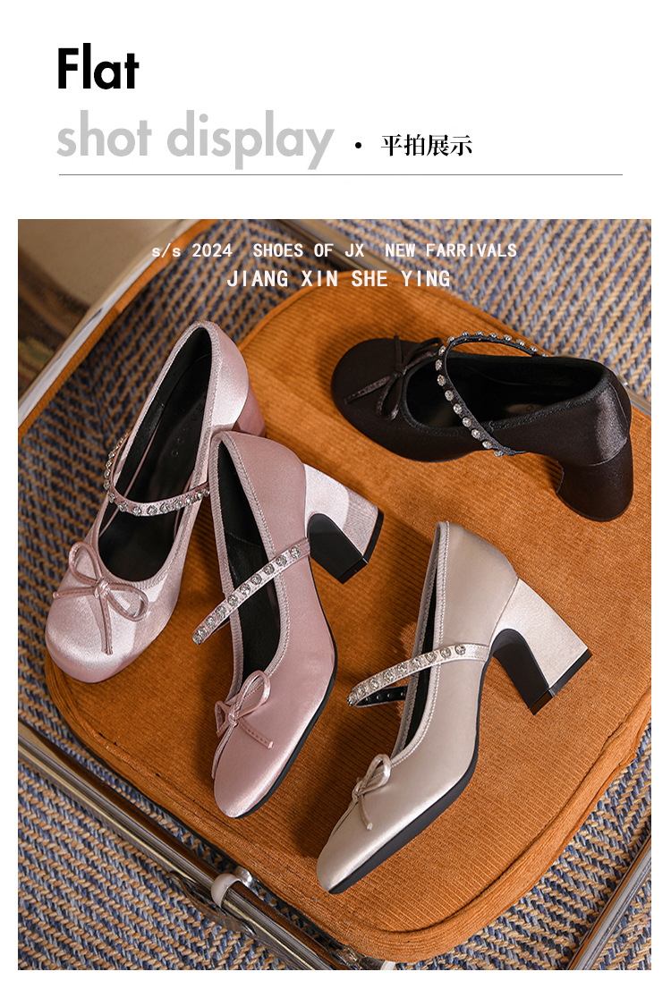 핑크 샤넬 스타일 여성 신발 봄과 가을 새로운 귀여운 활 라인스톤 한 캐릭터 라운드 토 하이힐 메리 제인 신발스토어 가기