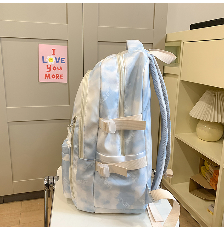 중학생 학교 가방 여성 높은 색상 가치 Ins 틈새 타이-염료 배낭 경량 경량 고등학교 학생 대학 스타일 배낭스토어 가기