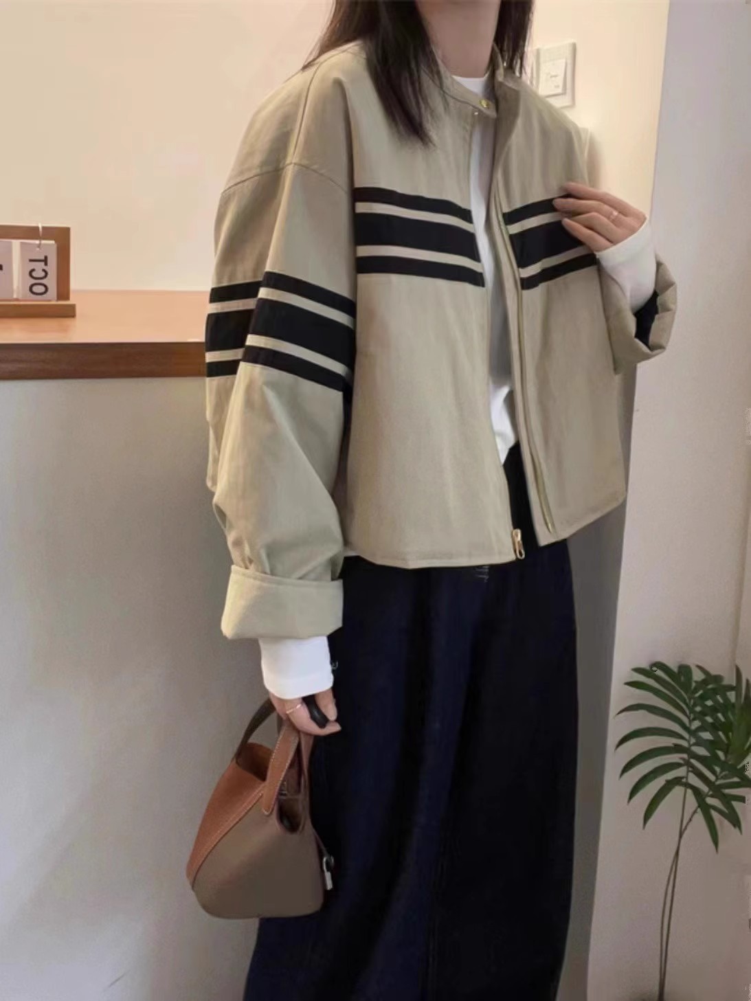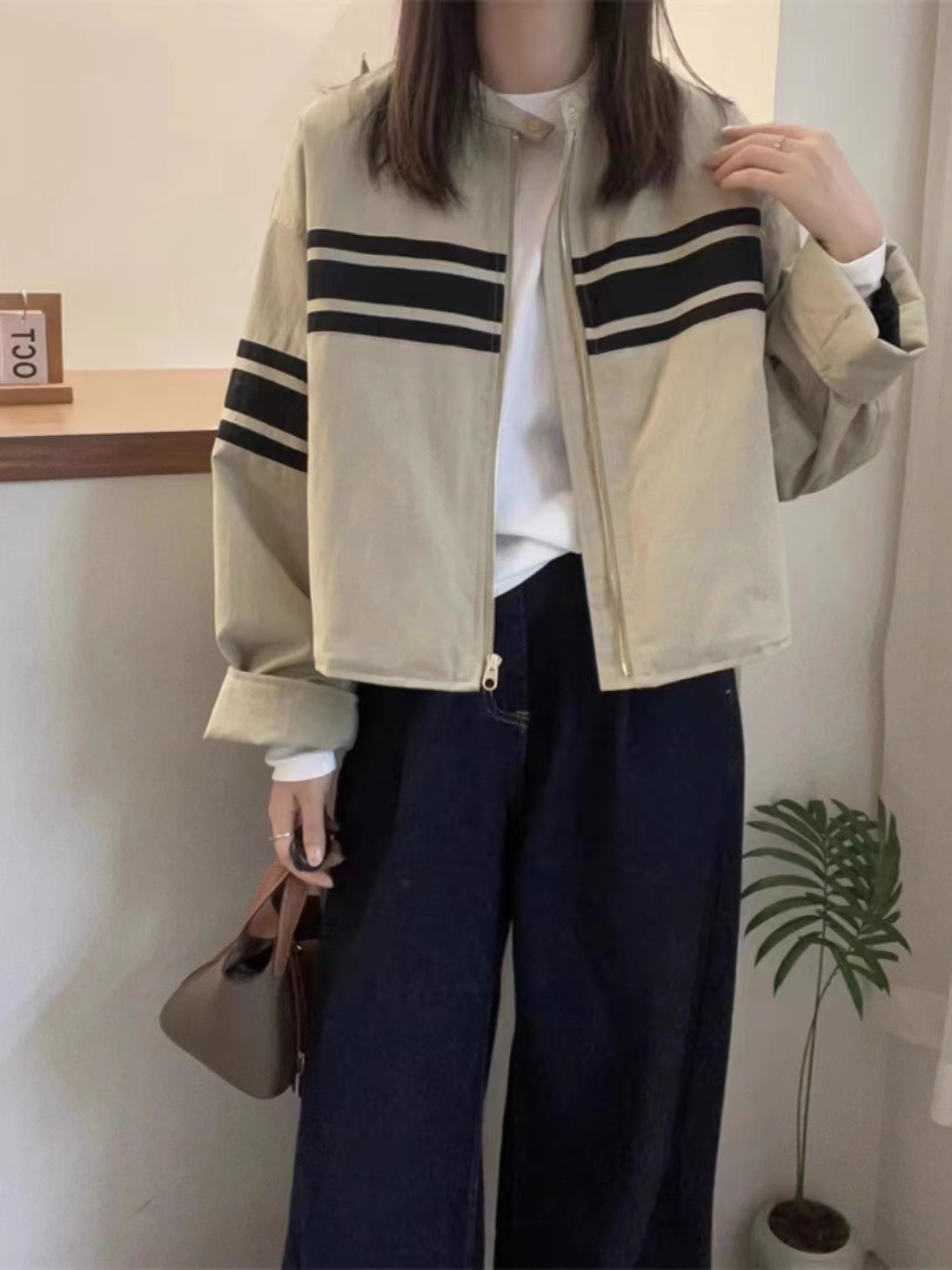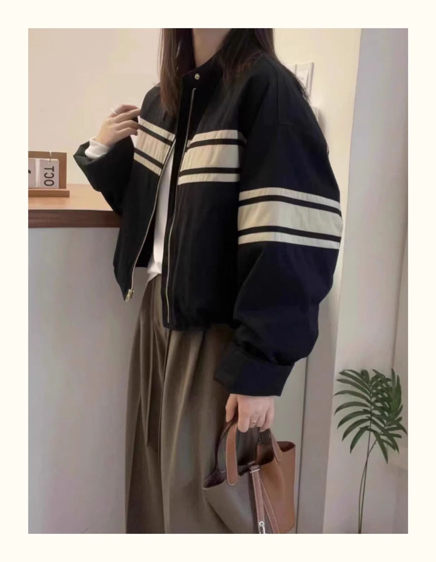 충전 옷 야구 세트 재킷 여자 봄과 가을 뜨거운 2024 새로운 라운드 넥 작은 캐주얼 스포츠 짧은 자켓