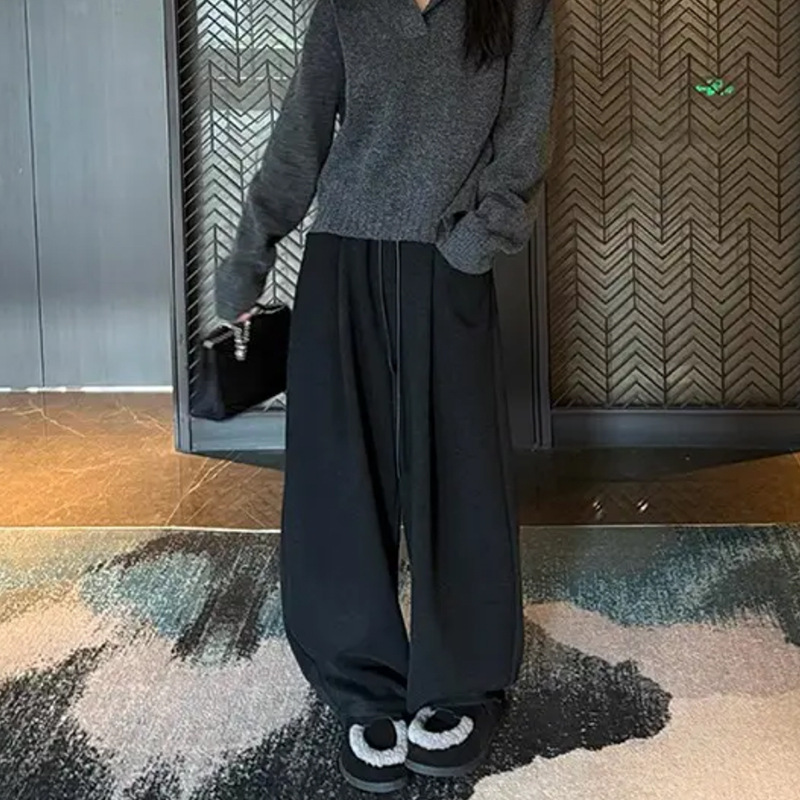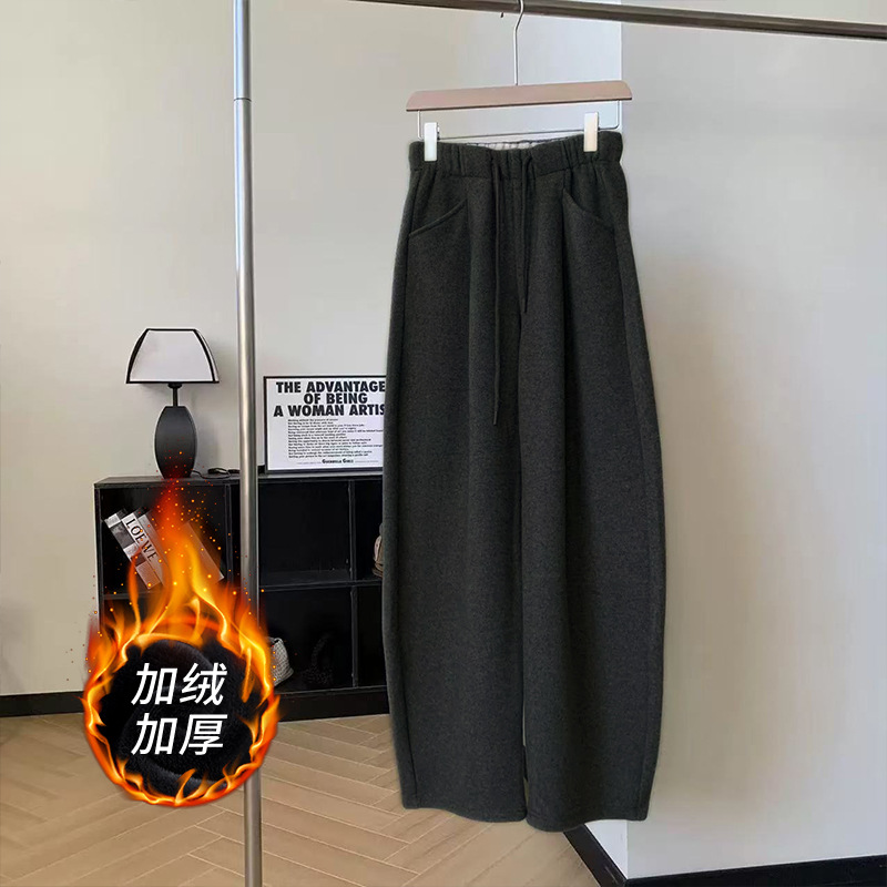 2025 가을 겨울 신상 모조 캐시미어 슬림핏 스트레이트 팬츠 루즈핏 슬림 여성용 팬츠 기모 두꺼운 캐주얼 팬츠