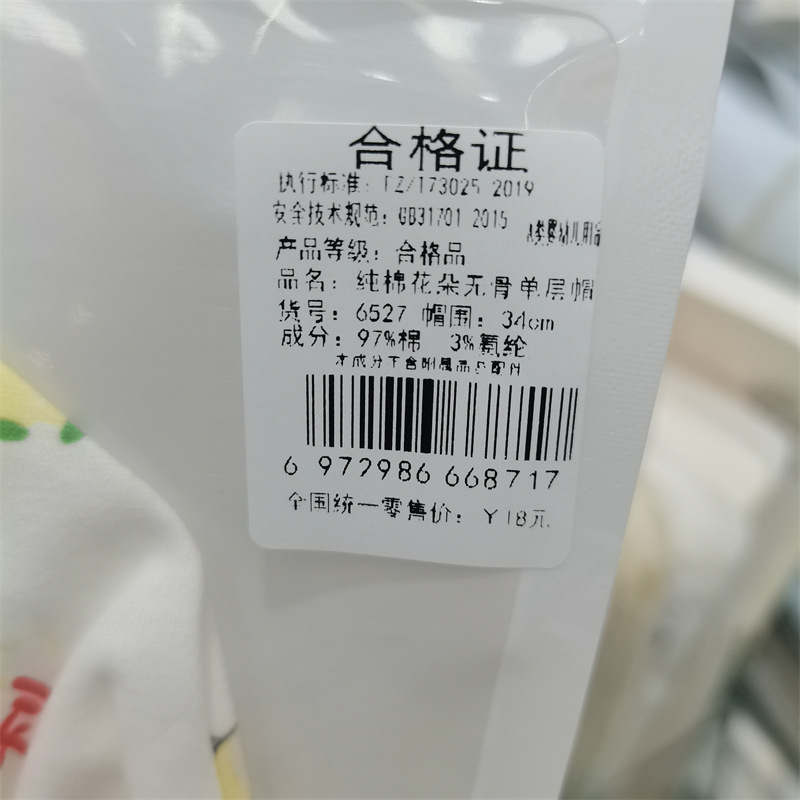 【品名】:婴儿春夏纯棉胎帽(单层)