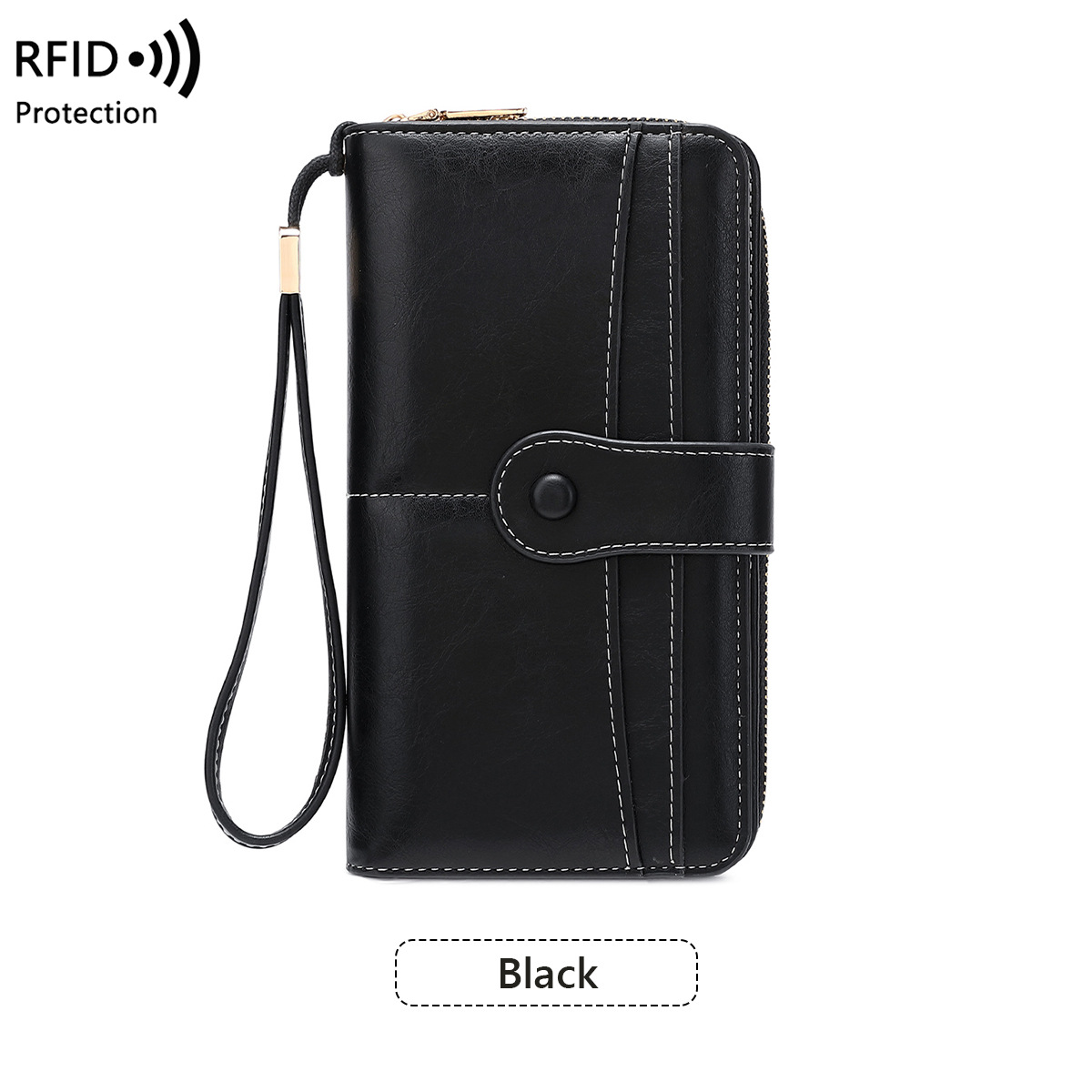 국경 간 새로운 RFID 도난 방지 브러시 여성용 지갑 지퍼 버클 지갑 유럽과 미국의 복고풍 대용량 롱 지갑