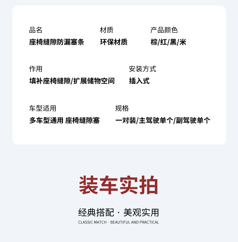 [페어팩] 카시트 갭 플러그 누수 방지 스트립 더블 슬롯 갭 플러그 스트립 자동차 세암 쿠션 코킹 방지 스트립