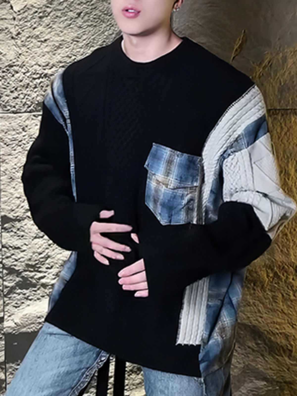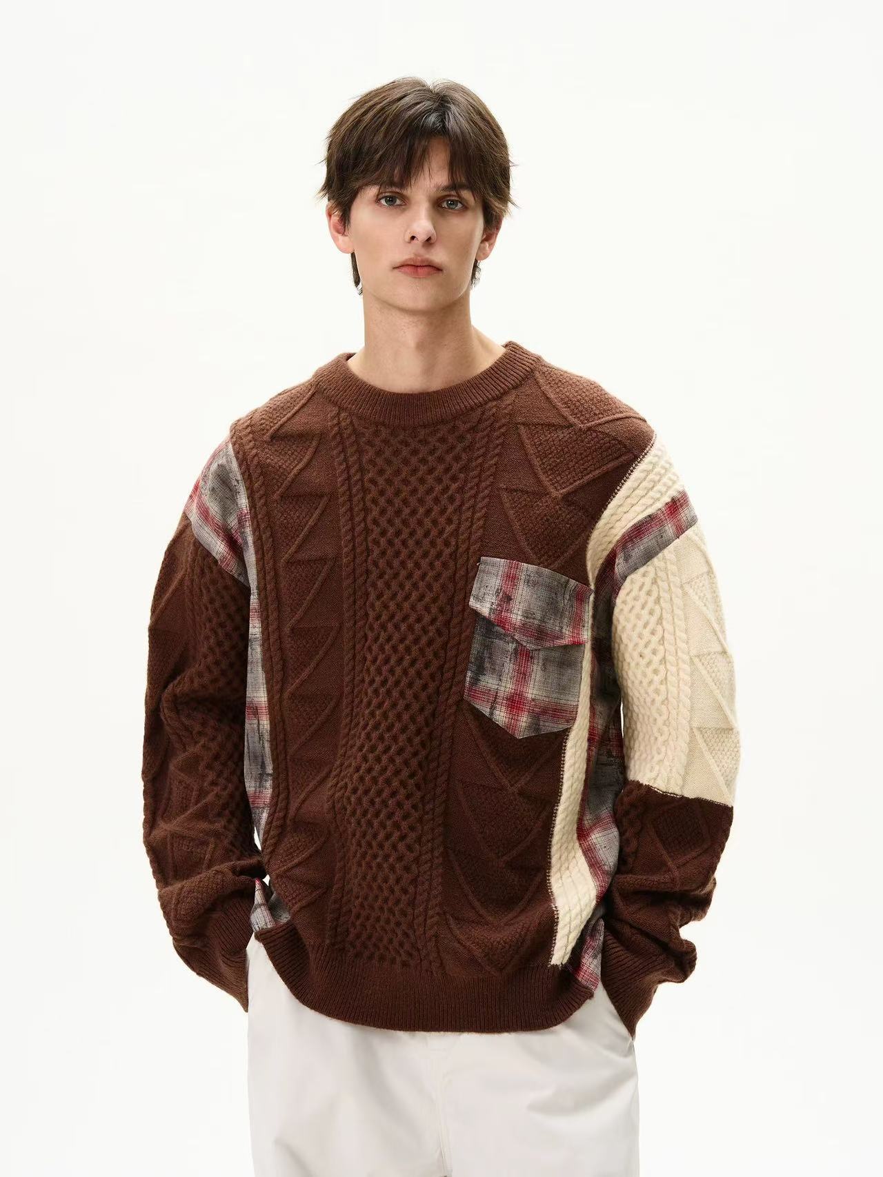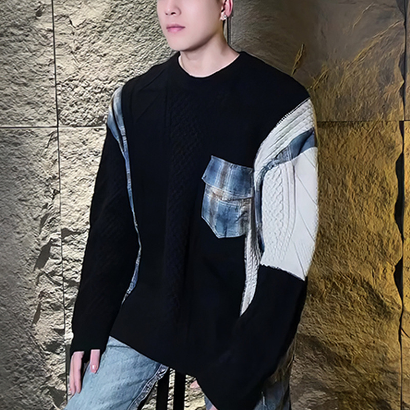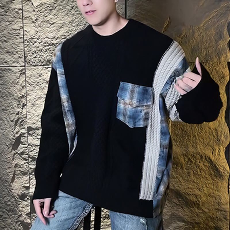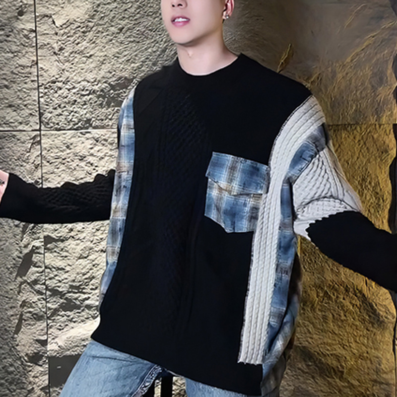 겨울 패션 브랜드 자카드 바느질 게으른 스타일 레트로 울 니트 스웨터 미국 최고의 남자 두꺼운 스웨터 라운드 넥 풀오버